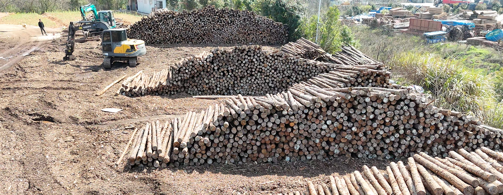 其生产基地有两个,各占地6800平方,日产1000个立方,具备完善的松木桩全链条供应链管理能力,实现从原木采购、加工处理、仓储物流、按需配送、现场保障一体化运营。通过稳定的上游林场资源、标准化加工体系、高效物流调度,确保松木桩品质稳定、供货及时、成本可控、交付可靠,满足各类工程连续施工需求。