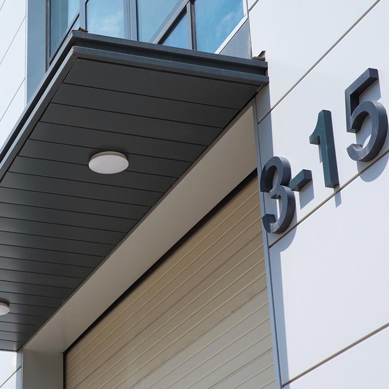 其中,四面企口夹芯板是多维联合集团股份有限公司的一款特色产品。它具有诸多优点,气密性达到4级,水密性也为4级。采用隐藏式自攻钉固定,墙板面无外漏,防水性优越,耐久性强,钉头还具有防腐蚀的特性。同时,运用EPDM胶条密封技术,规避了铝板对缝黑胶留胶污染板面的问题,还能防止雨水倒流,进一步提升了气密性。一体化转角板的设计,无收边搭接,安装一体化,既快捷又美观。