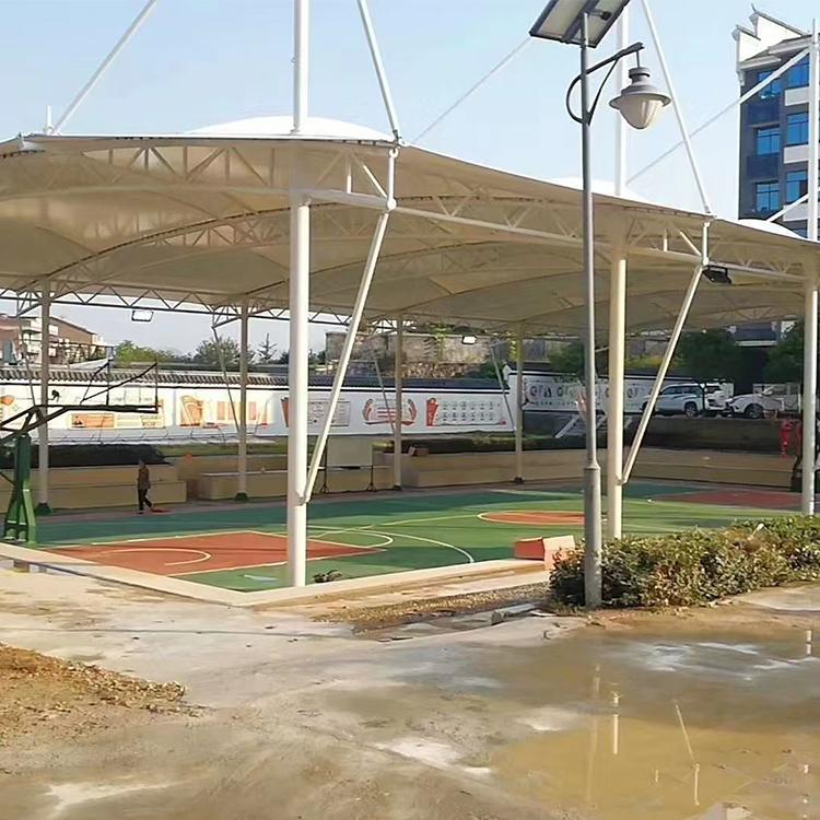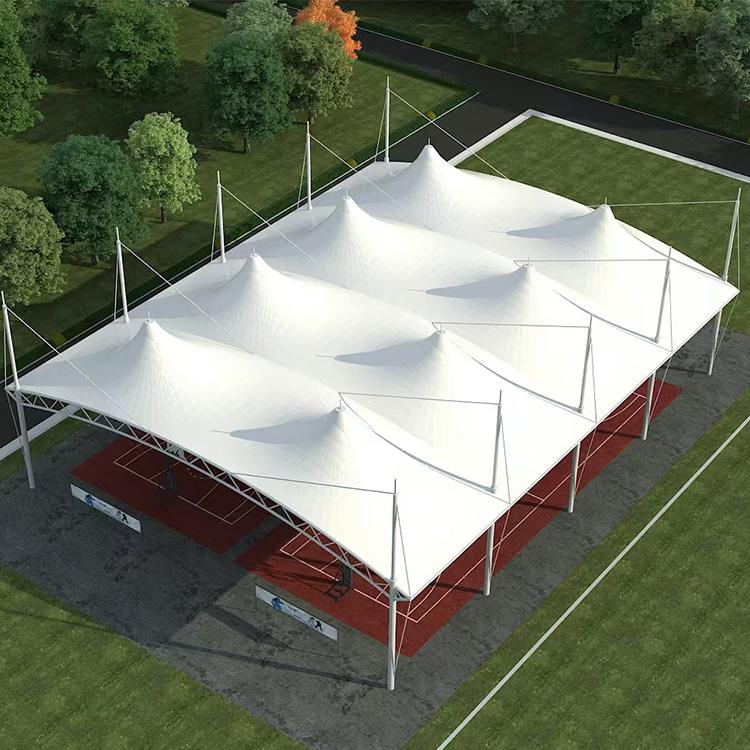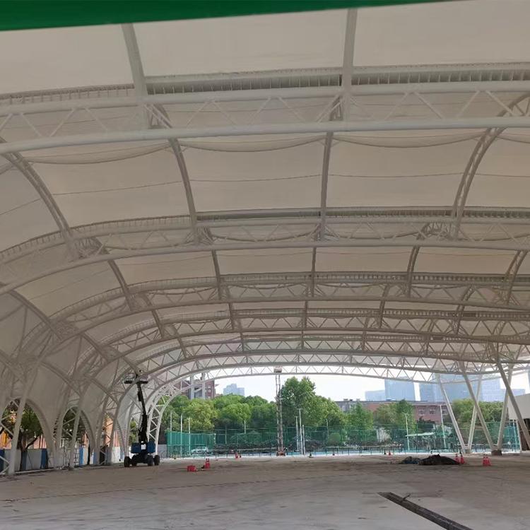 膜结构球场遮阳棚定制也是公司的一大特色。公司能够根据球场的大小、形状和使用需求,设计出独特的遮阳棚。这些遮阳棚不仅具有良好的遮阳效果,还能够与球场的整体风格相协调,为球员和观众创造一个舒适的环境。