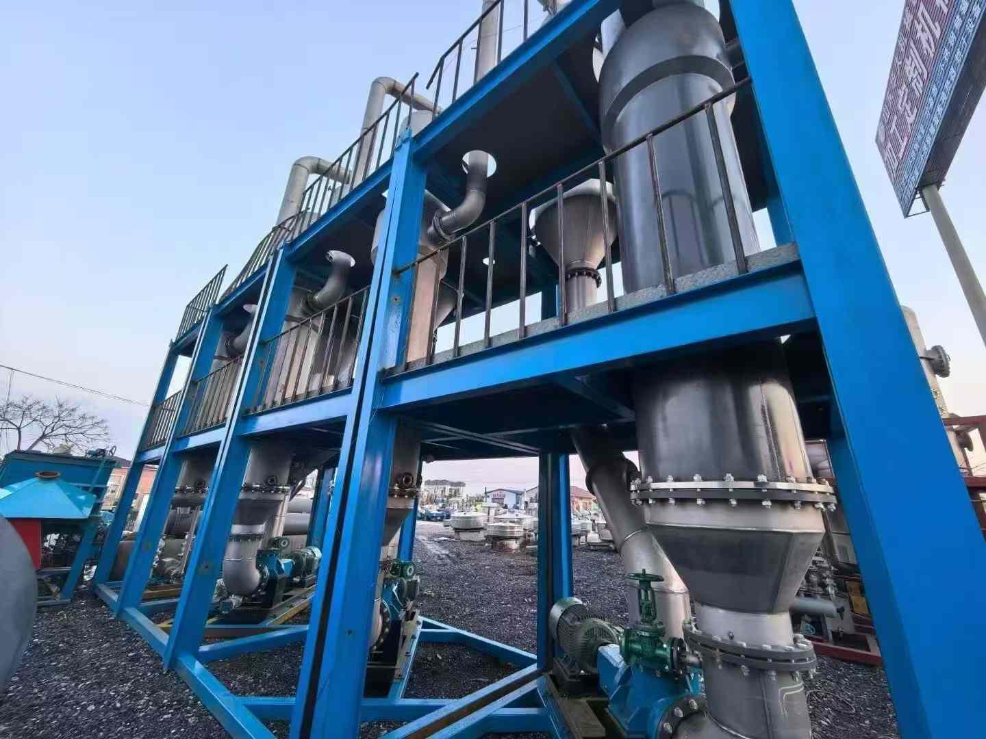 二手单效蒸发器结构相对简单,操作方便,适用于小规模的蒸发需求,能够对一些溶液进行初步的浓缩处理。二手低温蒸发器则可在较低的温度下进行蒸发操作,可以避免一些热敏性物质的分解或变质,在制药、食品等对温度敏感的行业有着较好的应用。