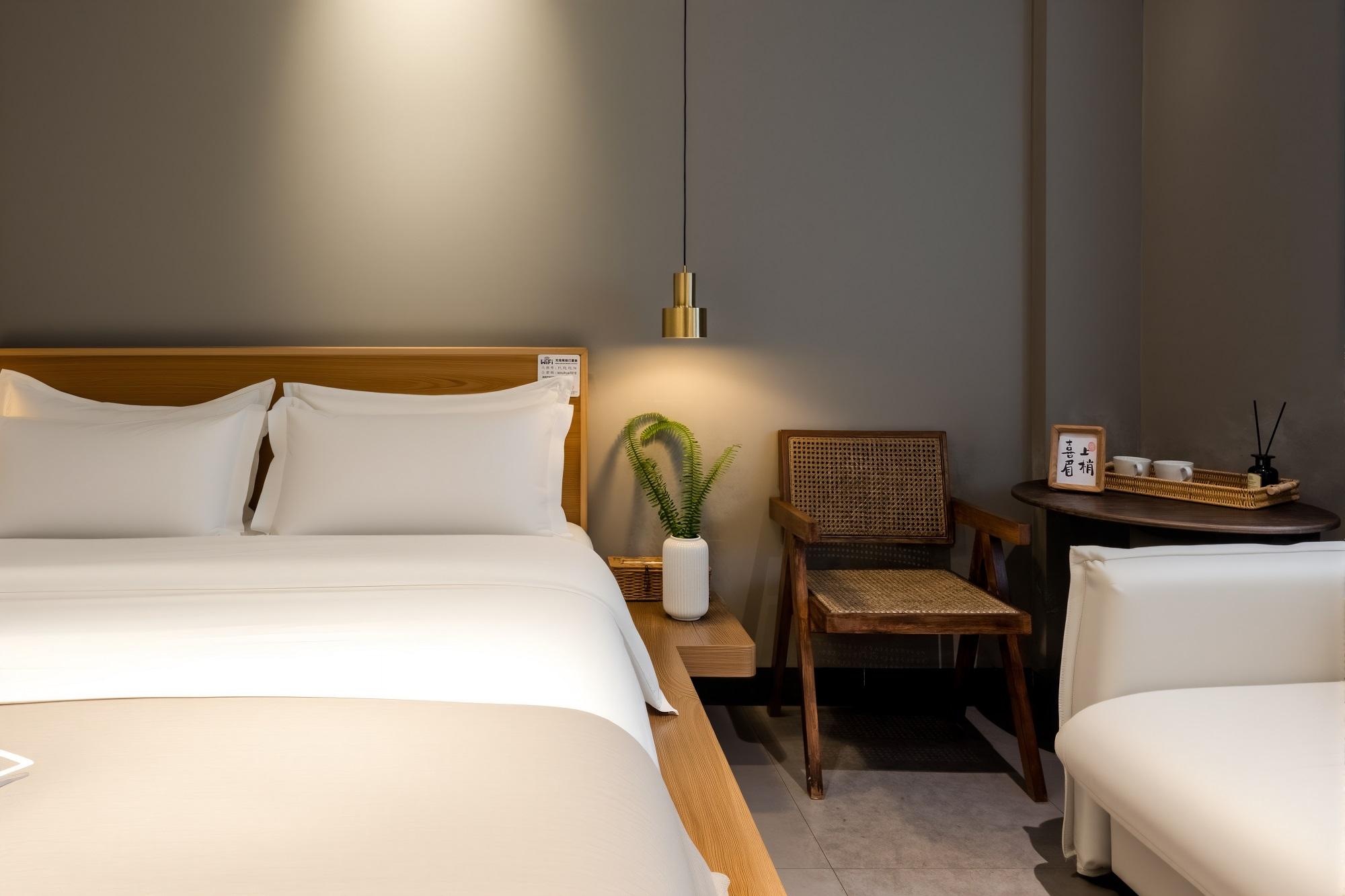 设施与环境上,四家门店在硬件配置与空间设计上各有特色,兼顾现代舒适与在地文化底蕴。房间普遍干净整洁、床品舒适,配备智能家居、投影仪、直饮水机、智能马桶等现代化设施;部分房型带有大阳台、沙发或观景视角,公共区域设有茶室、咖啡区、香道体验馆等,满足多元需求。风格上,芙呈行者·宋词主打宋式美学,由旧建筑改造而成,空间简约雅致,融入“宋时四雅”体验,氛围静谧高级;芙呈旅行系列风格涵盖温馨简约、北欧风、工业风等,部分门店带有特色庭院、露台或萌宠(猫咪),适合年轻群体打卡休闲。部分门店还提供特色洗护用品(如橡木香味款)、免费饮品,甚至非遗体验项目,丰富住客的古城旅居感受。