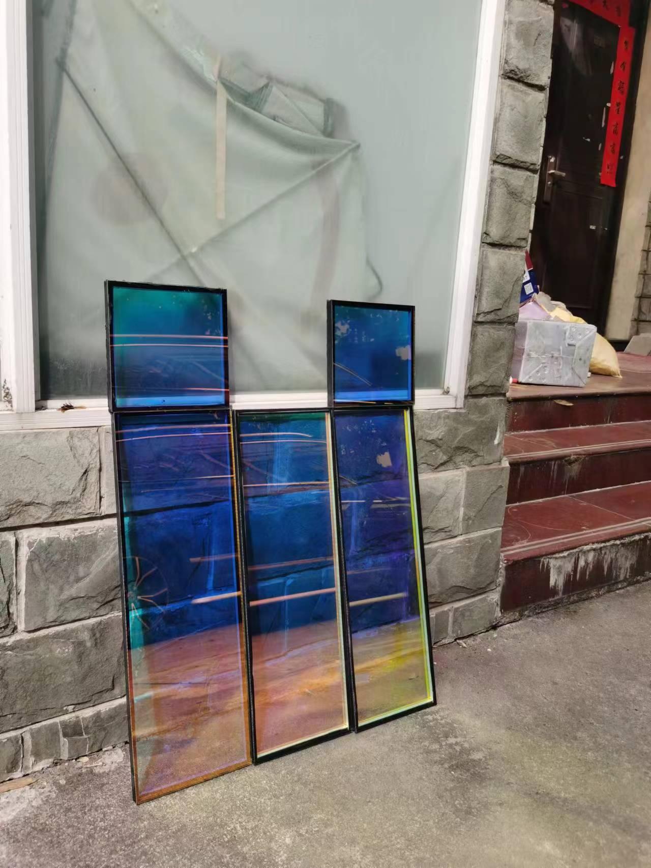 变色与炫彩系列:利用光学原理或电控技术,实现色彩变化与动态视觉效果。幻彩玻璃表面镀覆多层金属氧化物薄膜,光线照射下呈现多彩变幻;渐变玻璃通过丝网印刷或数码打印,形成色彩自然过渡效果;炫彩玻璃利用光的干涉效应,呈现绚丽多彩的视觉效果;变色玻璃随光线角度或温度变化呈现不同色彩;彩色玻璃玻璃本体着色或表面镀色,色彩均匀饱满;调光玻璃液晶调光膜夹入玻璃,通电透明、断电雾化;雾化玻璃通过电控或贴膜实现雾化效果,保护隐私;雾化调光玻璃兼具调光与雾化功能,可自由切换透明与隐私模式。