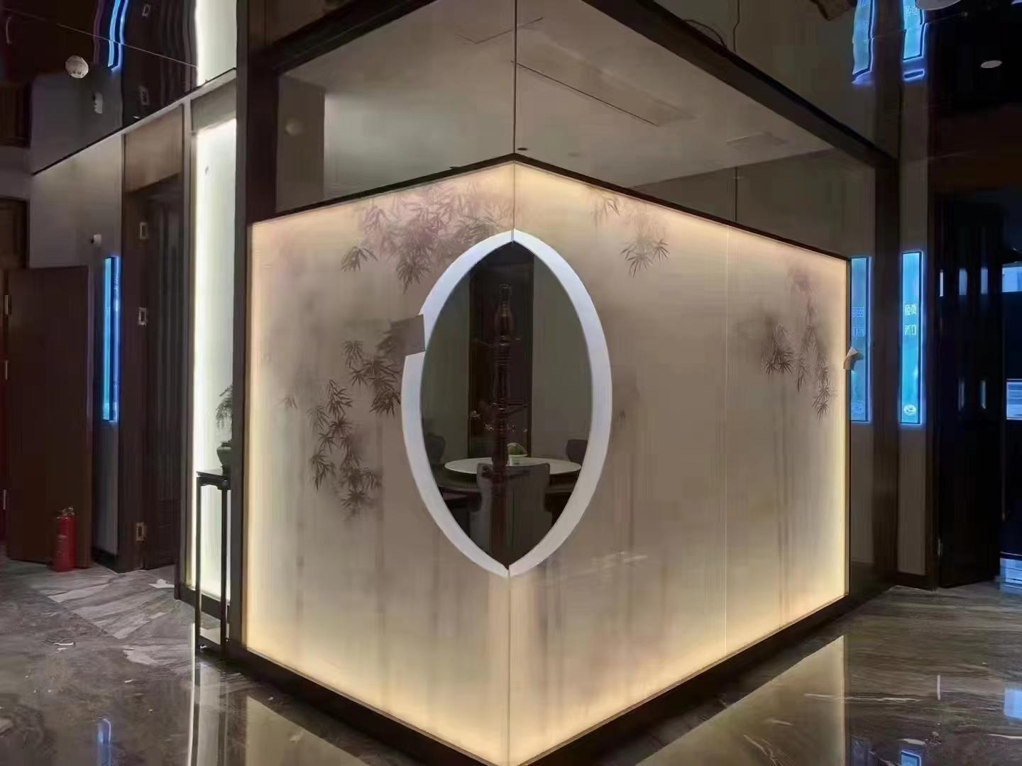 在产品特点方面,该公司的玻璃具有多样化视觉效果,可实现半透明、朦胧透、不透明、双面看、单面看等多种呈现方式,满足不同空间对通透性与私密性的需求;支持图案自由定制,花鸟、山水、抽象画、几何图形等任意图案都能设计,也可来图来样加工;拥有多种玻璃品类,涵盖夹丝、夹绢、夹画、渐变、炫彩、调光、压花、异型弯钢等系列,适配各类室内外场景。