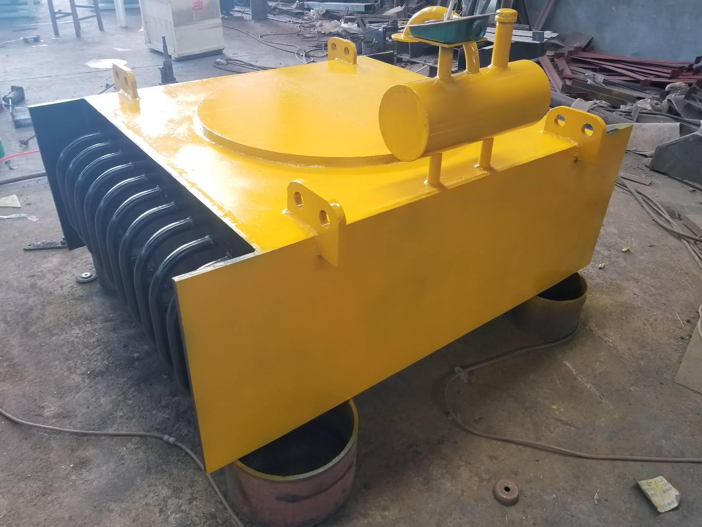 自卸除铁器也是该公司的主营产品之一,它能够将混杂在物料中铁磁性杂质清除,以保证运送系统中的破碎机、研磨机等机械设备安全正常作业,同时能够有效地防止因大、长铁件划裂运送皮带的事故发生,亦可明显提升原料层次。按其卸铁方式又可分为人工卸铁、自动卸铁和程序控制卸铁等多种作业方式,由于使用场所和磁路结构不同,形成了各种系列的产品。