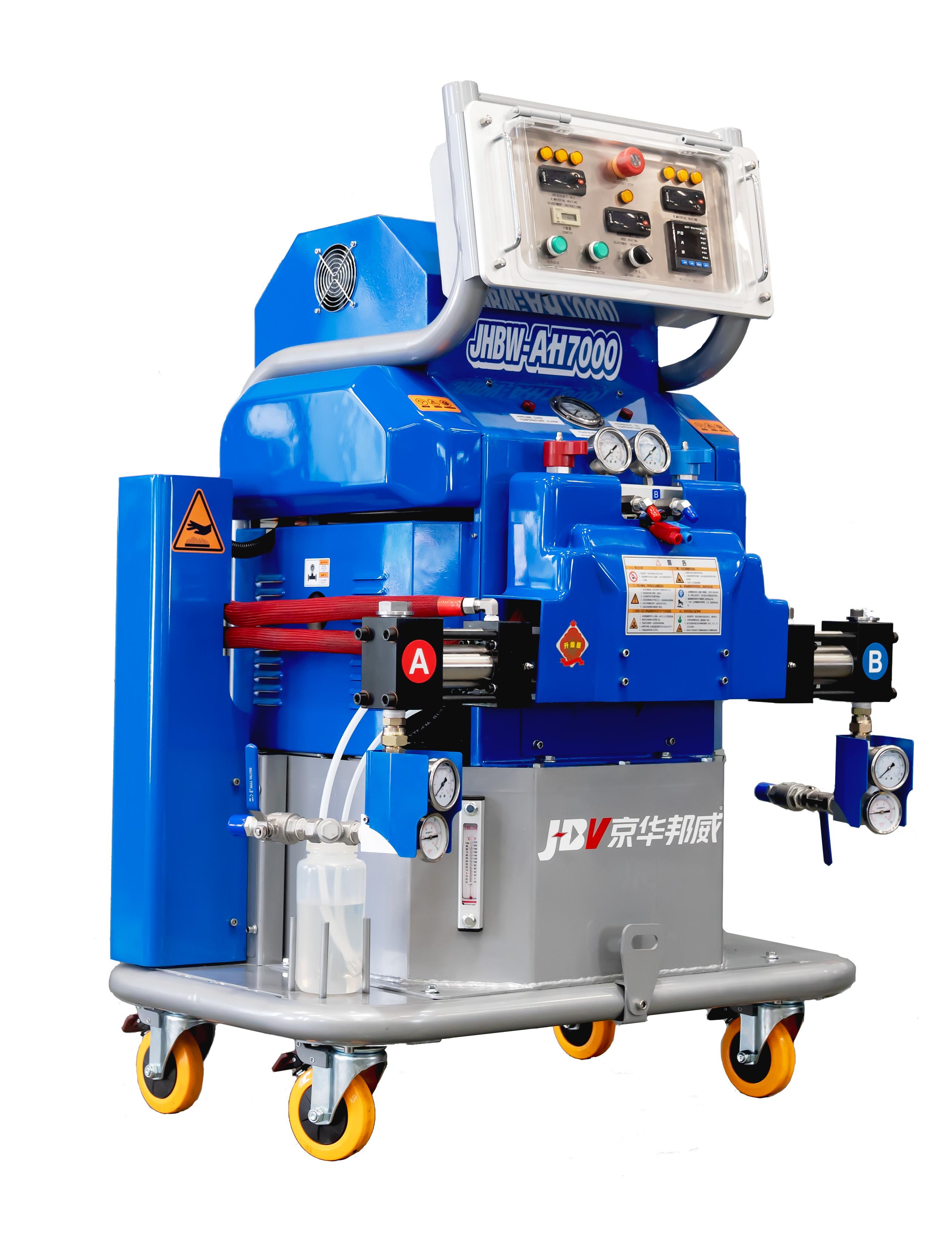 以AH3500和AH7000为例,设备采用高压无气喷涂技术,雾化均匀,可节省原料约10%,部分型号具备1:1至1:2的可变比例调节功能,能适应不同粘度的原料。配备强大的加热系统,能在寒冷环境下正常工作。关键部件采用特殊工艺提升耐用性,如增压缸部分型号采用进口缸体,比例泵采用316L不锈钢缸体,密封装置液压机型采用特殊合金材料。