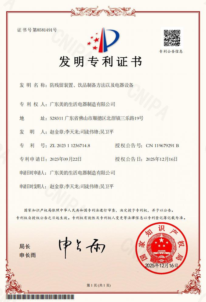 自2019年布局咖啡机以来,美的每年投入研发费用超1000万元,全自动咖啡机整体投入超1.2亿,攻克下咖啡机领域难度系数较高、专利壁垒较强、生产要求较严的全自动咖啡机品类,以核心技术创新打造优质产品,已申请技术及发明专利147项,构建了自己的技术护城河。与此同时,美的还积极参与咖啡机行业标准的制定,聚焦家用咖啡机核心性能和咖啡品质,主导新建了《家用咖啡机性能要求与测试方法》和《奶泡的评价方法》等两项行业团体标准,为企业生产、消费者选购、相关检测机构评检提供有力有效的抓手和依据。