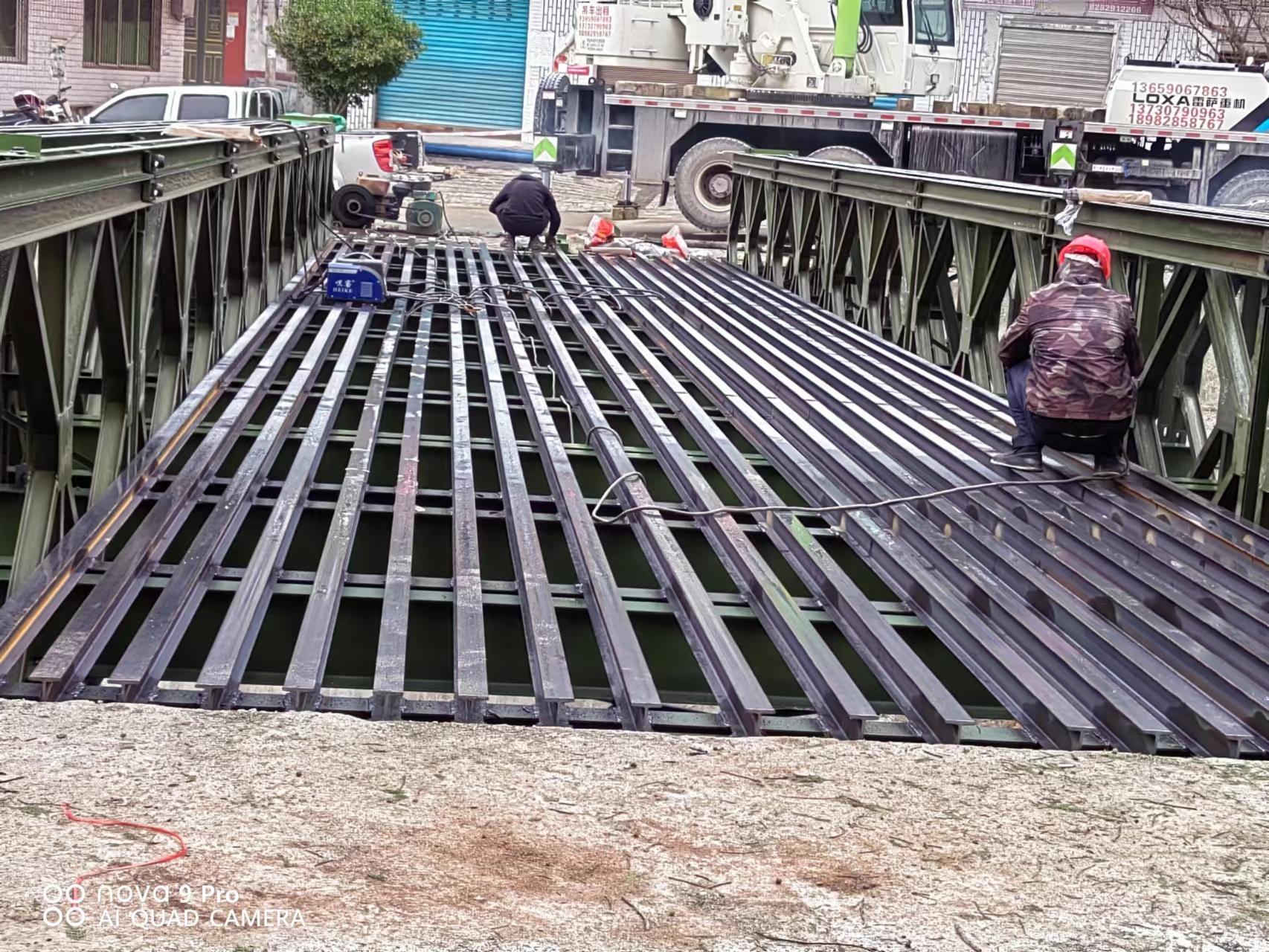 在使用范围方面,公司各类租赁产品适配场景广泛,可满足不同领域、不同工况的施工需求。在抢险救灾场景中,贝雷桥、钢便桥可快速拼装,打通地震、洪水等灾害后的救援通道,保障抢险人员、物资运输及受灾群众转移;在交通工程建设中,可作为新建道路、桥梁施工期间的临时绕行通道,或用于高速公路改扩建、乡村山区道路建设,满足日常通行和施工运输需求。在市政水利工程中,可用于水库、堤坝施工的临时通道,或城市地下管网施工时的沟槽临时覆盖,保障地面交通不中断;在危桥加固、矿山油田野外作业等场景中,贝雷片、贝雷梁、贝雷桁架可灵活拼装成支撑平台或临时桥梁,适配复杂地形和重载需求,同时可根据实际跨径、荷载要求灵活调整拼装形式,适配不同施工环境。