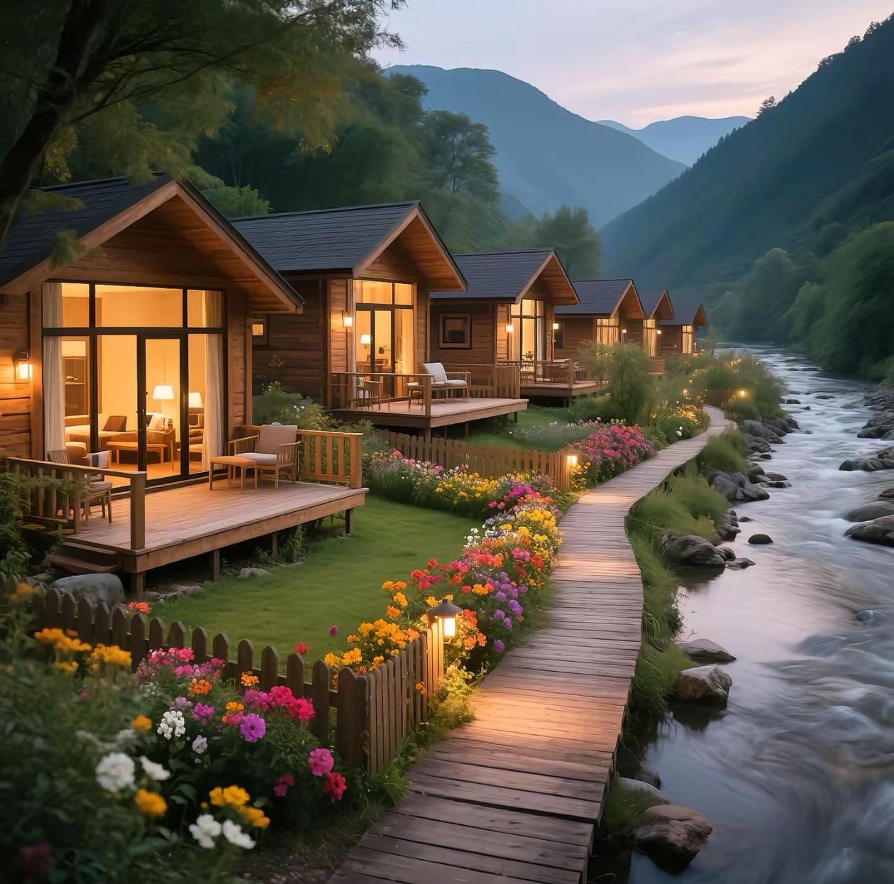 乡村民宿木屋集群项目里,多套度假木屋顺利落地。这些木屋采用模块化建造,工期短、颜值高,助力民宿快速运营与客流提升。