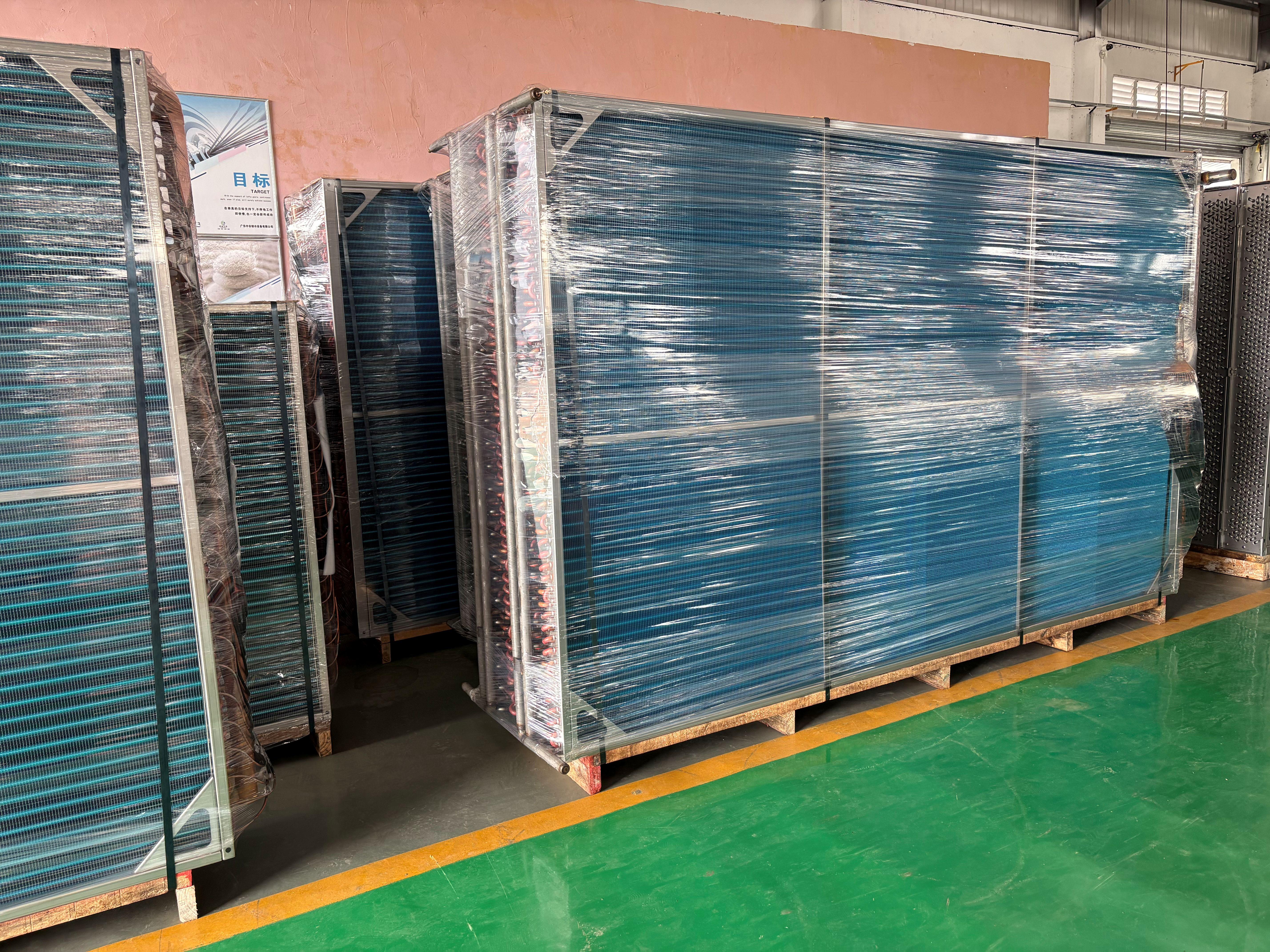亲水铝箔翅片式冷凝器采用了亲水铝箔材料,这种材料能够有效地防止冷凝水在翅片表面积聚,从而提高了冷凝器的散热效率。亲水铝箔翅片式冷凝器适用于对湿度控制要求较高的环境,如医院、实验室等。