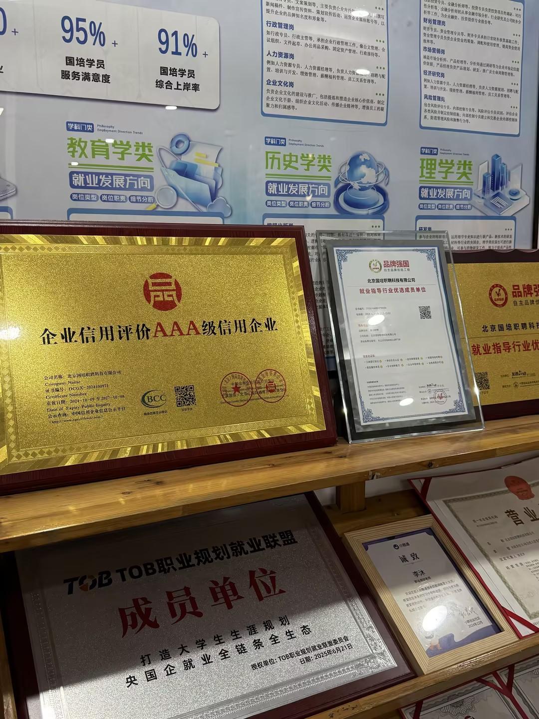 在2026年2 - 3月,国培职聘持续助力多名26届应届生成功拿到交通银行、招商银行、武汉建工集团、苏州农商银行等知名央国企、银行、建工企业的offer,学员上岸案例持续更新。此外,公司入选品牌强国自主品牌优选工程,通过身份实名认证、工商登记验证、信用督查、经营场地考察等多项权威信息验证,并斩获企业信用评价AAA级信用企业等多项AAA级资质认证,品牌正规性与公信力进一步提升。