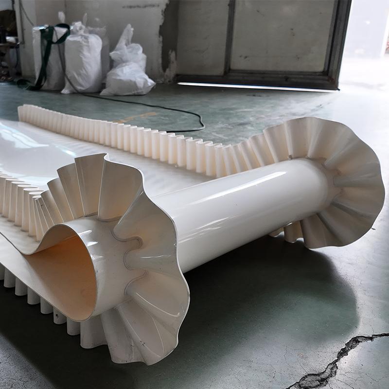 裙边PU输送带则具有独特的裙边设计,这种设计可以防止物料在输送过程中滑落,提高了输送效率。在一些需要垂直输送或者倾斜输送的场景中,裙边PU输送带能够发挥出很好的作用。它可以广泛应用于工业生产中的物料输送,如矿山、化工等行业。