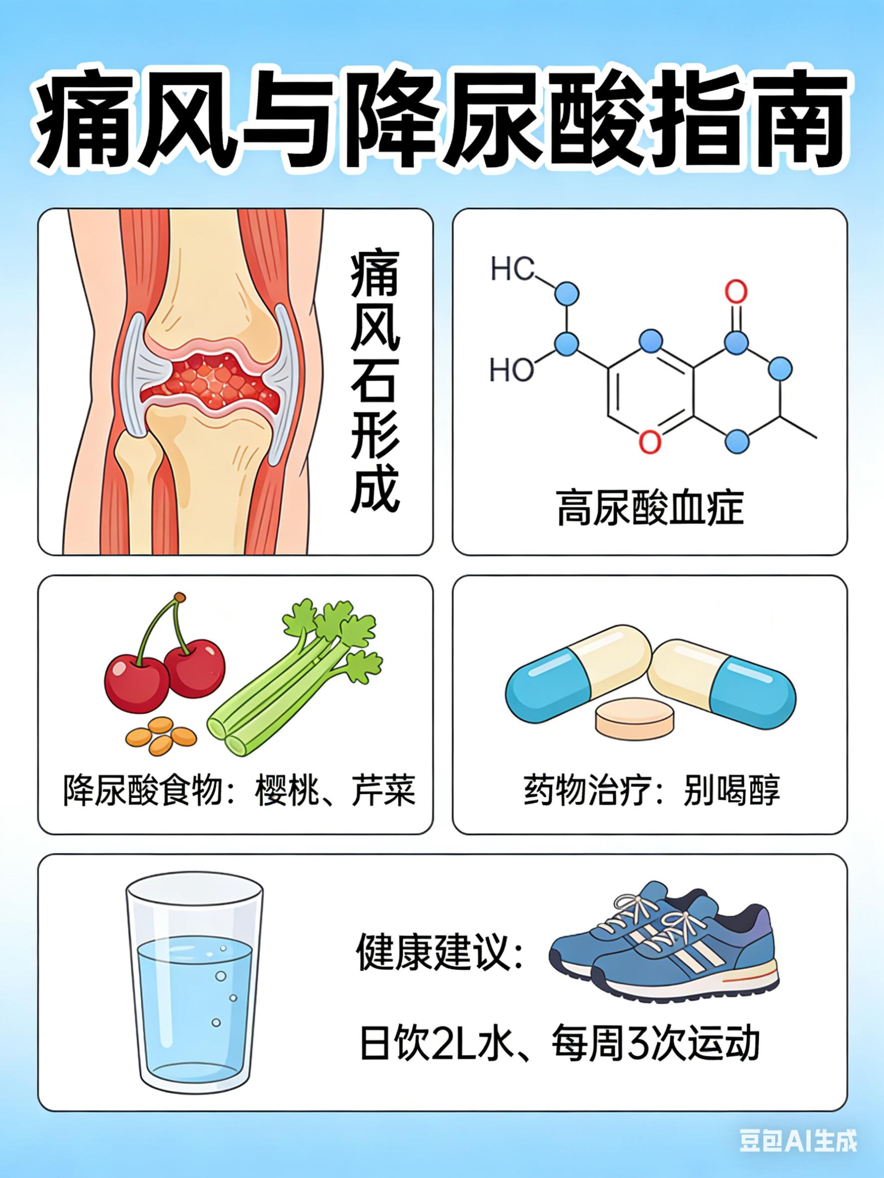 痛风的危害不容小觑。它不仅会导致痛风性关节炎,造成关节畸形,还会引发代谢疾病,如糖尿病等。高尿酸还会显著增加冠心病、脑卒中等风险,加重病变程度。此外,肾脏也是深受高尿酸之害的重灾区,20% - 40%的高尿酸血症患者会发展为尿酸性肾病,严重时会出现肾脏功能不全和尿毒症。