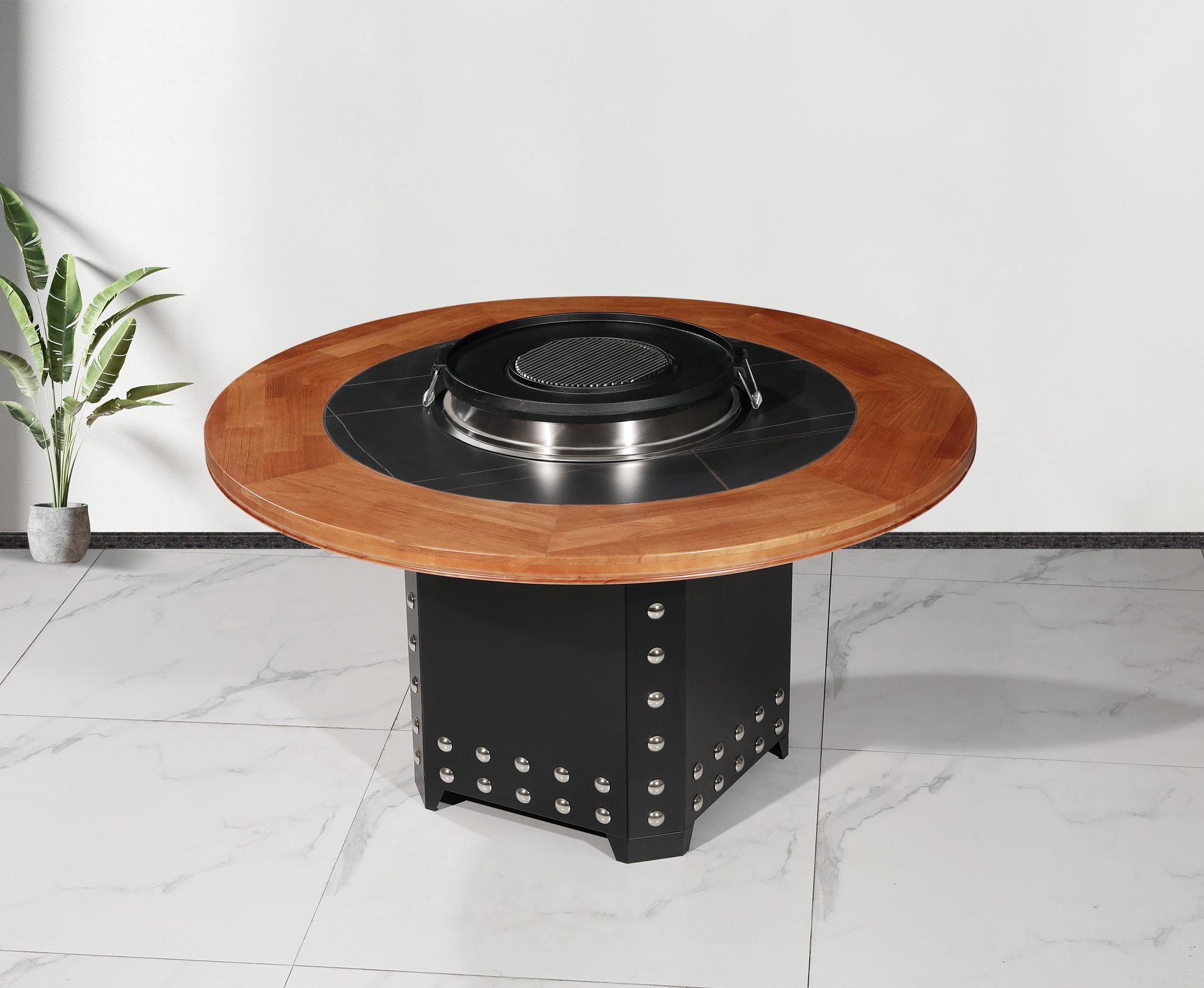 涮烤一体桌,将烧烤和涮火锅的功能结合在一起,满足了消费者多样化的需求。顾客可以根据自己的喜好选择烧烤或涮火锅,增加了用餐的趣味性。这种桌子的结构设计科学,能够有效避免油烟和热气的散发,保持用餐环境的舒适。
