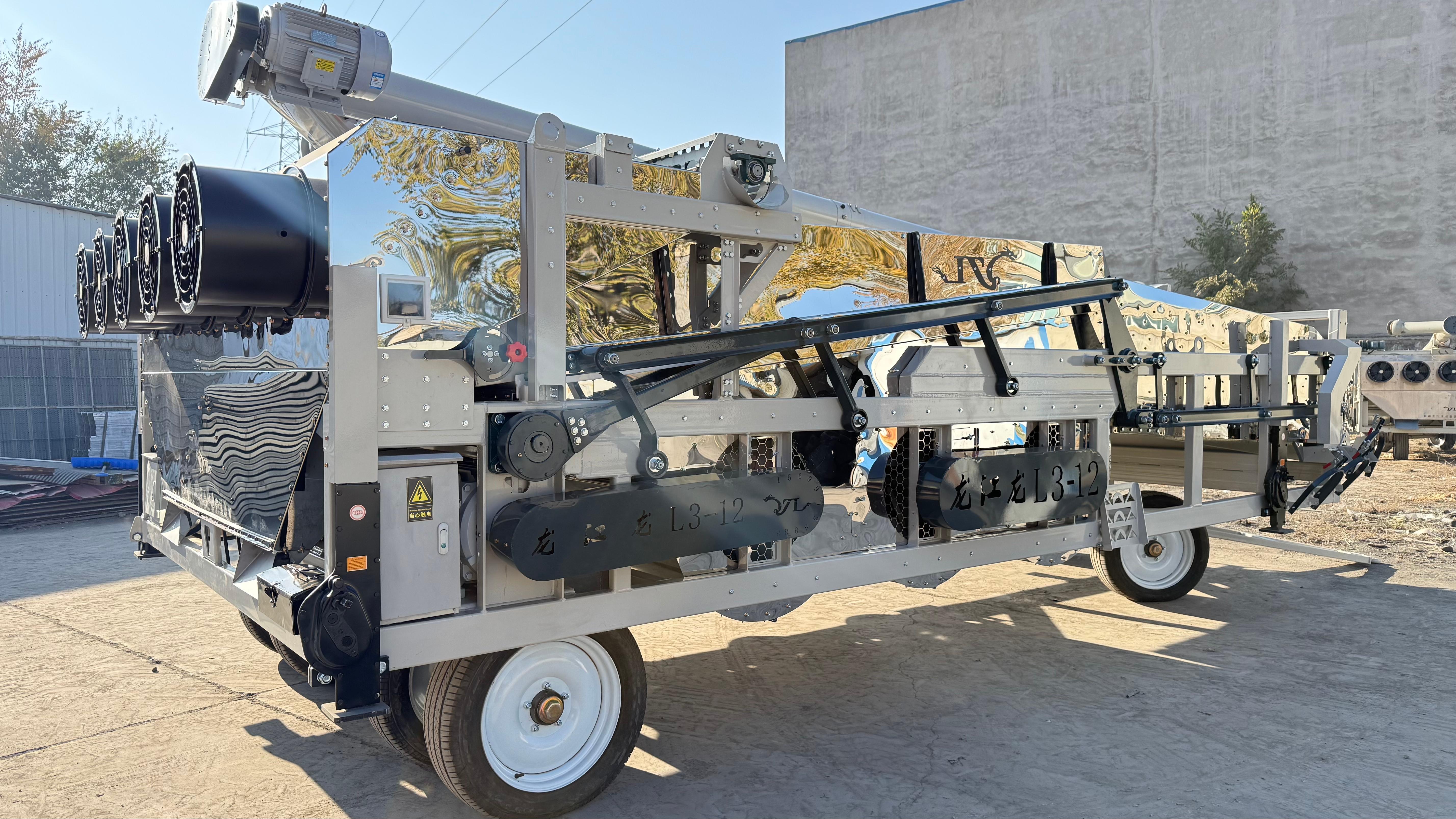 L3 - 12型精选机整机功率33.25千瓦,自重5.5吨。配置三组主风机(18.5千瓦调频电机)、12个风箱及叶轮。工作区域包括8.96平方米比重台(3.2×2.8米)和7平方米分级筛(2.5×2.8米)。核心技术在于处理葵花、打瓜、玉米等不同物料时无需更换筛片,可直接切换作业,设有6个出粮口,标配液压搅龙。