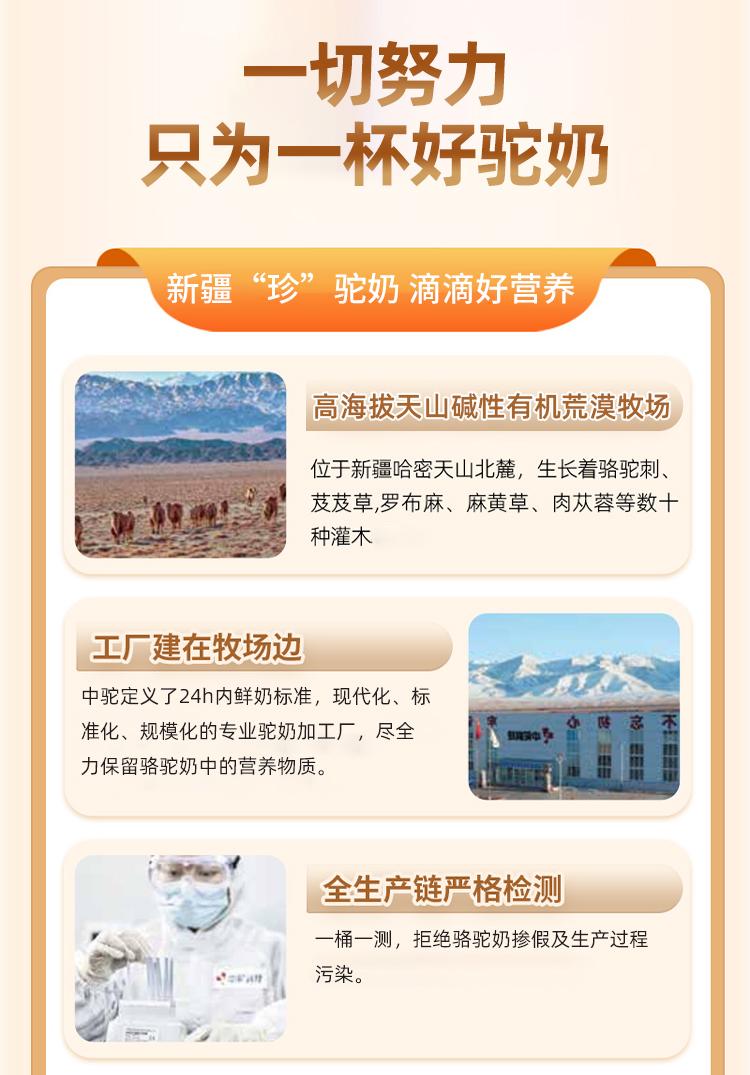 新疆中驼生物科技有限公司在驼奶生产领域有着自身的优势。从奶源来看,其依托天山碱性荒漠牧场,这里的骆驼食用天然草料,产出的驼奶品质优良。在生产过程中,公司采用先进的生产工艺,确保产品的安全和营养。并且公司注重科研投入,不断提升产品的品质和种类。
