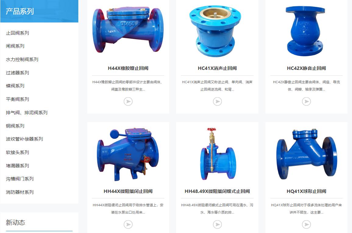再如HC41X消声止回阀,是引进与德国同类产品而设计制造的一系列新型连接阀门。它具有安装简易、不受安装场地限制、便于管道与阀门的维修保养,有隔振隔音与在一定的角度范围内克服管道连接不同轴而产生偏差,解决温差所产生热胀冷缩等优点。适用于给排水、消防、暖通系统,可安装于水泵出口处,防止回水倒流,而对泵造成损坏。