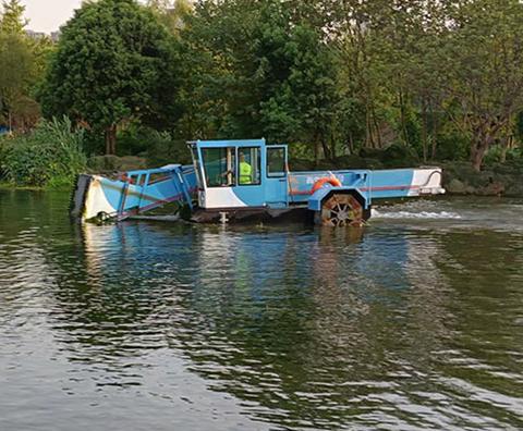 水草打捞船是潍坊晟河环保机械制造有限公司的明星产品之一。它主要用于清理水域中的水草,防止水草过度生长影响水域生态平衡和航运安全。水草打捞船具有高效的打捞能力,能够快速、准确地将水草打捞上船。其独特的设计使得它在不同水域条件下都能稳定运行,无论是小型池塘还是大型湖泊,都能出色地完成水草清理任务。