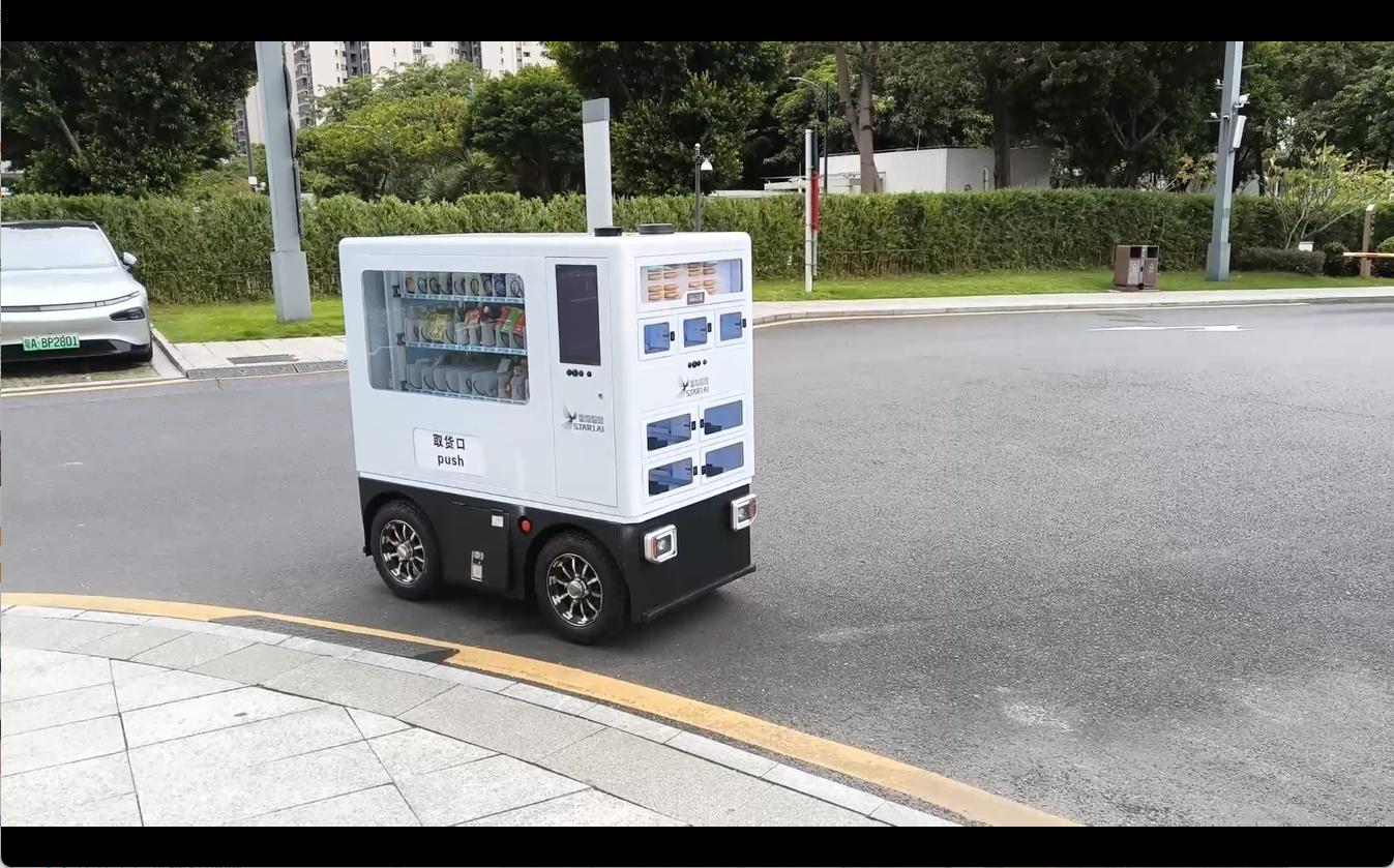 无人售货车是基于L4级自动驾驶技术的移动零售终端,集自动驾驶、智能售货与精准运营于一体,可在园区、景区、街区等场景中自主巡游或定点停靠。车辆搭载智能温控系统(支持冷藏/加热)、多功能货柜与无接触支付界面,能够自动提供饮品、零食等即取即走服务,通过云端调度与大数据分析,能实现智能补货、需求热力追踪与精准营销。