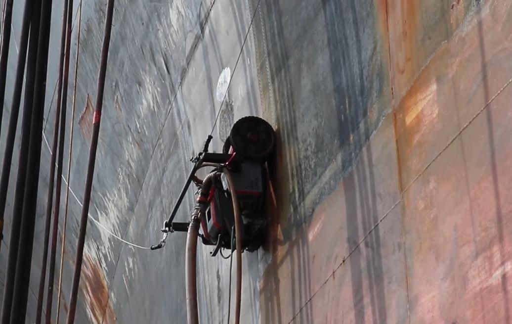 水射流清理机器人HighMate V40 Ultra系列曲面适应性强,可覆盖全船98%以上外板表面除锈作业,船头曲面除锈作业,舭龙骨除锈作业,船尾反顶除锈作业都能轻松应对。越障高度可达25mm,四轮组柔性磁吸附底盘吸附稳定性高,支持手动作业一键换道,智能导航三种模式,可用于各类钢板表面作业,作业高效安全可靠。