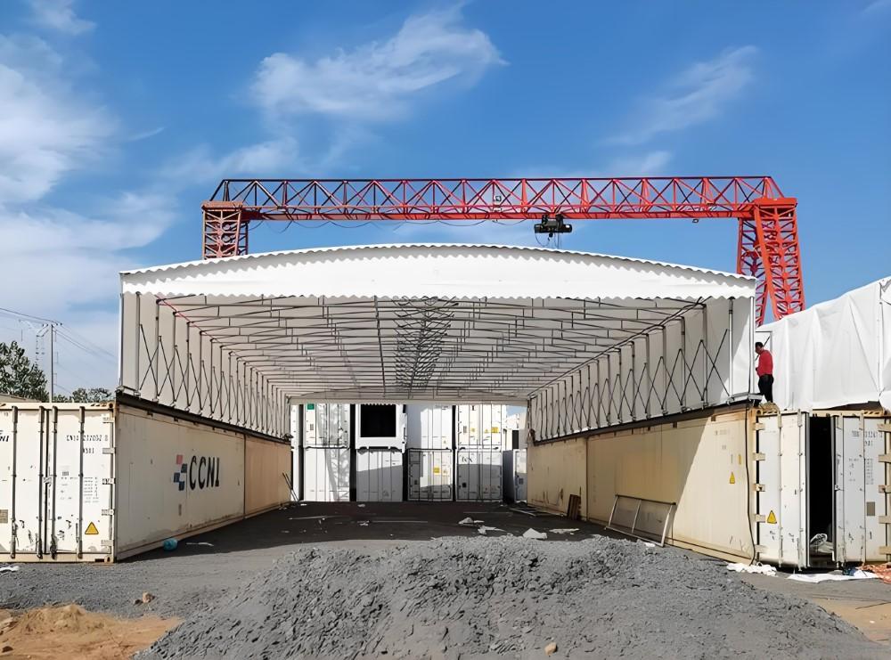 移动伸缩雨棚便于移动和安装,可以根据需要随时改变位置。它的灵活性使得它在一些临时性的活动或场所中得到广泛应用,如户外集市、临时停车场等。