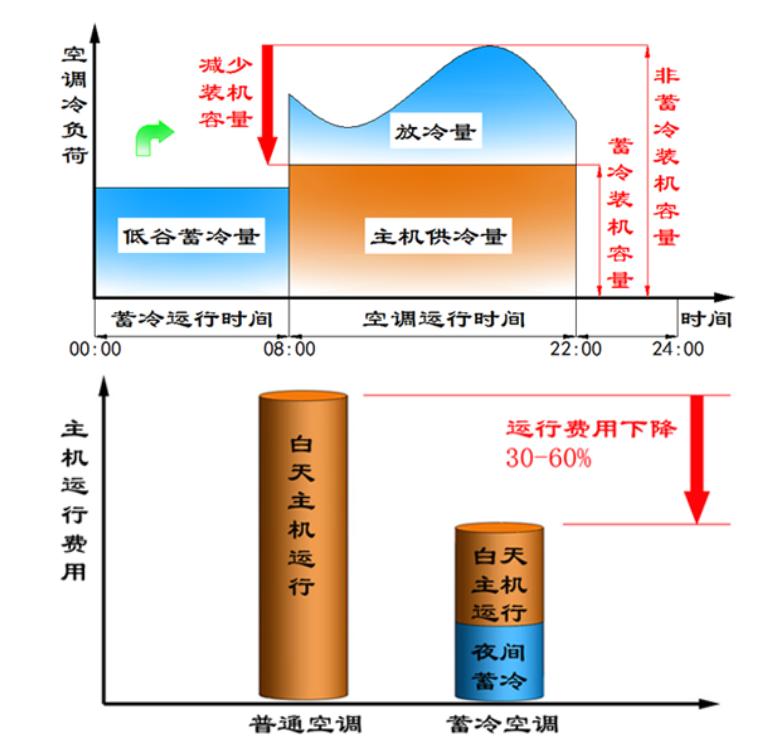 再看看冰蓄冷。冰蓄冷空调是指利用双工况制冷主机,在用电低谷时段制冰,其冷量以冰的形式贮存起来,然后在用电高峰时段释放出来。这样在用电高峰时段就可以少开甚至不开主机,从而减少制冷主机装机容量,并且将一部分用电高峰时段空调用电量转移至低谷段,达到节省电费目的。蓄冷技术在节约能源的同时也保护了环境,将成为中央空调的必然和趋势。