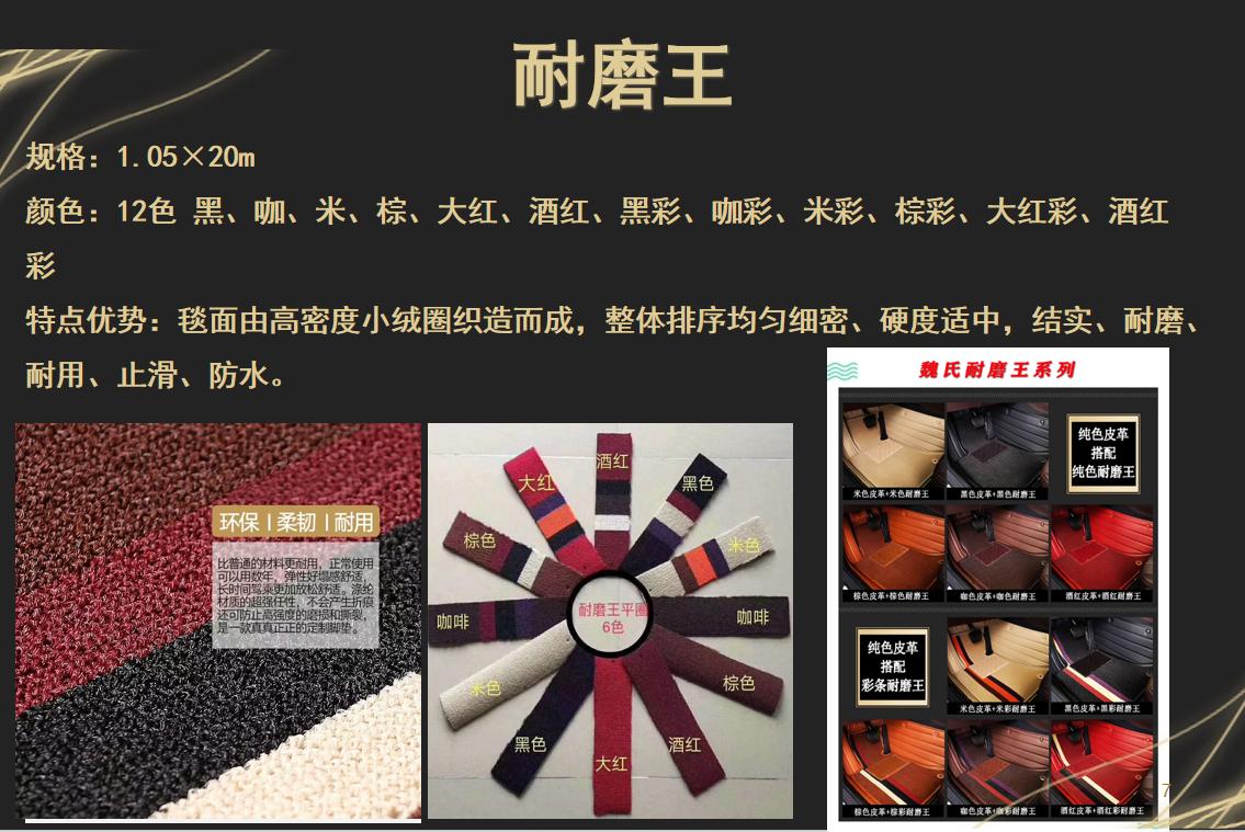 WEISHI魏氏脚垫主营多种类型的汽车脚垫产品。公司是360汽车脚垫品牌,其360汽车脚垫能够全方位贴合汽车内部,为车内提供更全面的保护,有效防止灰尘、污渍等进入车内缝隙,保持车内的整洁。同时,它的贴合度高,不会因为车辆行驶过程中的颠簸而移位,确保使用的稳定性。