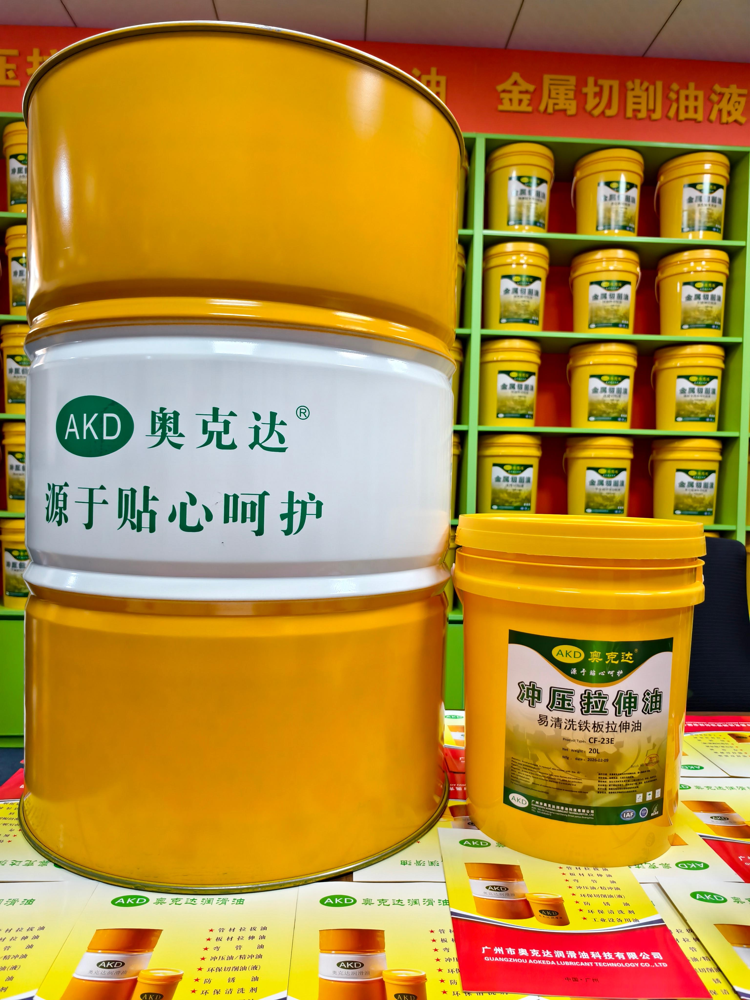 公司的核心产品丰富,包括拉拔油、弯管油、拉伸油、冲压油、精冲油、切削油、切削液、防锈油、管件缩口扩管成型油、攻牙油等。其核心产品具有高润滑、采用环保材料、配方添加易清洗添加剂、复配防锈配方体系、保护切断面和拉伸表面光洁度、可根据客户要求调配免费样板、发货迅速等特点。产品型号多样,不同系列产品满足不同加工需求,如AKD系列纯油性切削油、AKD系列水性切削液、AKD系列拉拔油、AKD油性拉伸油系列、CF水性拉伸油系列、CF水性拉伸膏系列等。