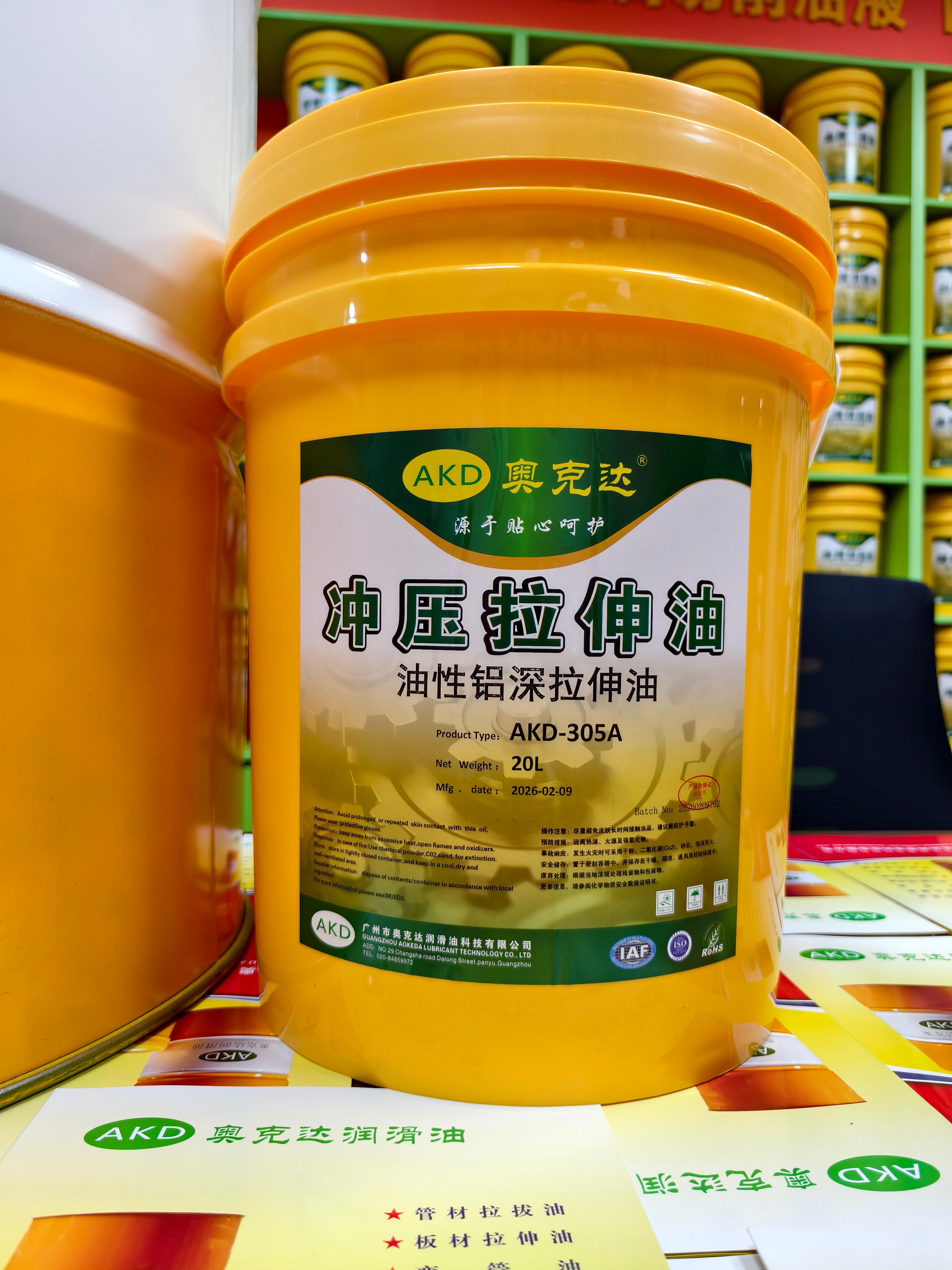 AKD系列拉拔油包括不锈钢棒材拉拔油,不锈钢管材拉拔油,铜铝拉拔油,拉拔膏,易清洗拉拔油,高粘度拉拔油等,此类产品各种不同粘度满足客户需求,油膜粘附性能好,拉拔后产品表面光洁度高,高润滑高极压有效延长模具寿命,油污清洗方便。AKD油性拉伸油系列产品包括铁材拉伸油,不锈钢拉伸油,铜铝拉伸油,挥发性冲压拉伸油,防锈拉伸油,免洗冲压油,挥发冲剪油,铝箔冲压油等,这类产品能满足各种板材的冲压深拉伸需求,防止产品拉裂拉爆,针对薄板的连续冲压拉伸,可以实现后续免清洗工艺。