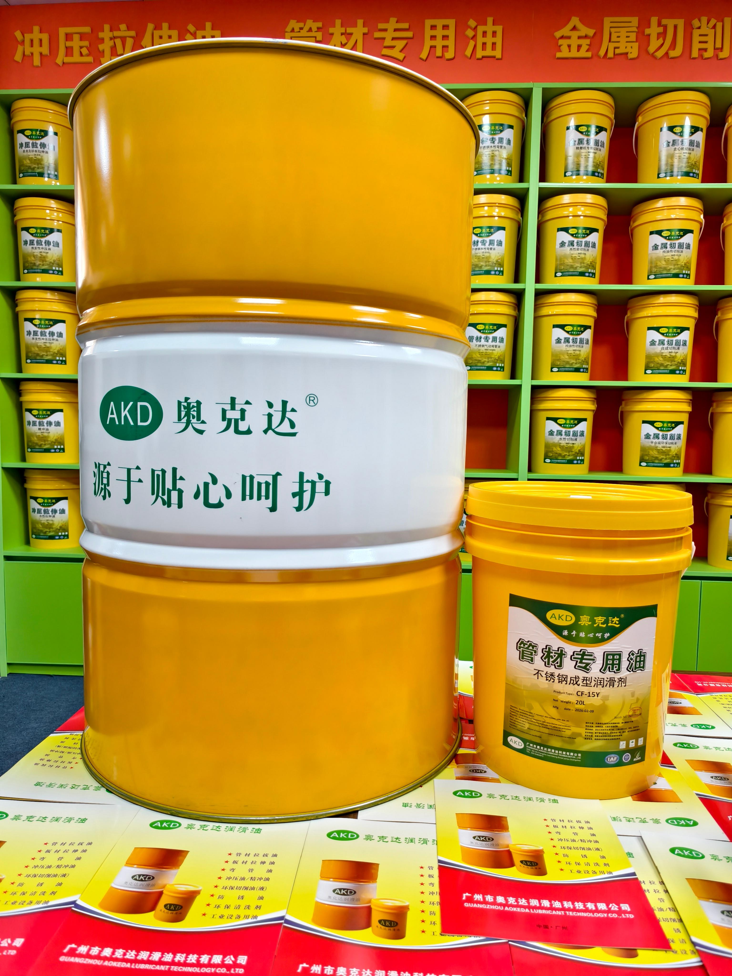 拉伸油方面,有AKD油性拉伸油系列和CF水性拉伸油系列。AKD油性拉伸油系列包括铁材拉伸油、不锈钢拉伸油、铜铝拉伸油、挥发性冲压拉伸油、防锈拉伸油、免洗冲压油、挥发冲剪油、铝箔冲压油等,能满足各种板材的冲压深拉伸需求,防止产品拉裂拉爆,针对薄板的连续冲压拉伸,还可以实现后续免清洗工艺。CF水性拉伸油系列从CF - 14到CF - 19,包括不锈钢水性拉伸油、防锈水基拉伸油、铜铝水性拉伸油等,润滑性能好,能满足深拉伸需求,可以兑水使用,降低成本,特别适合连续冲压拉伸点滴润滑,水性配方使得后续油污清洗方便。