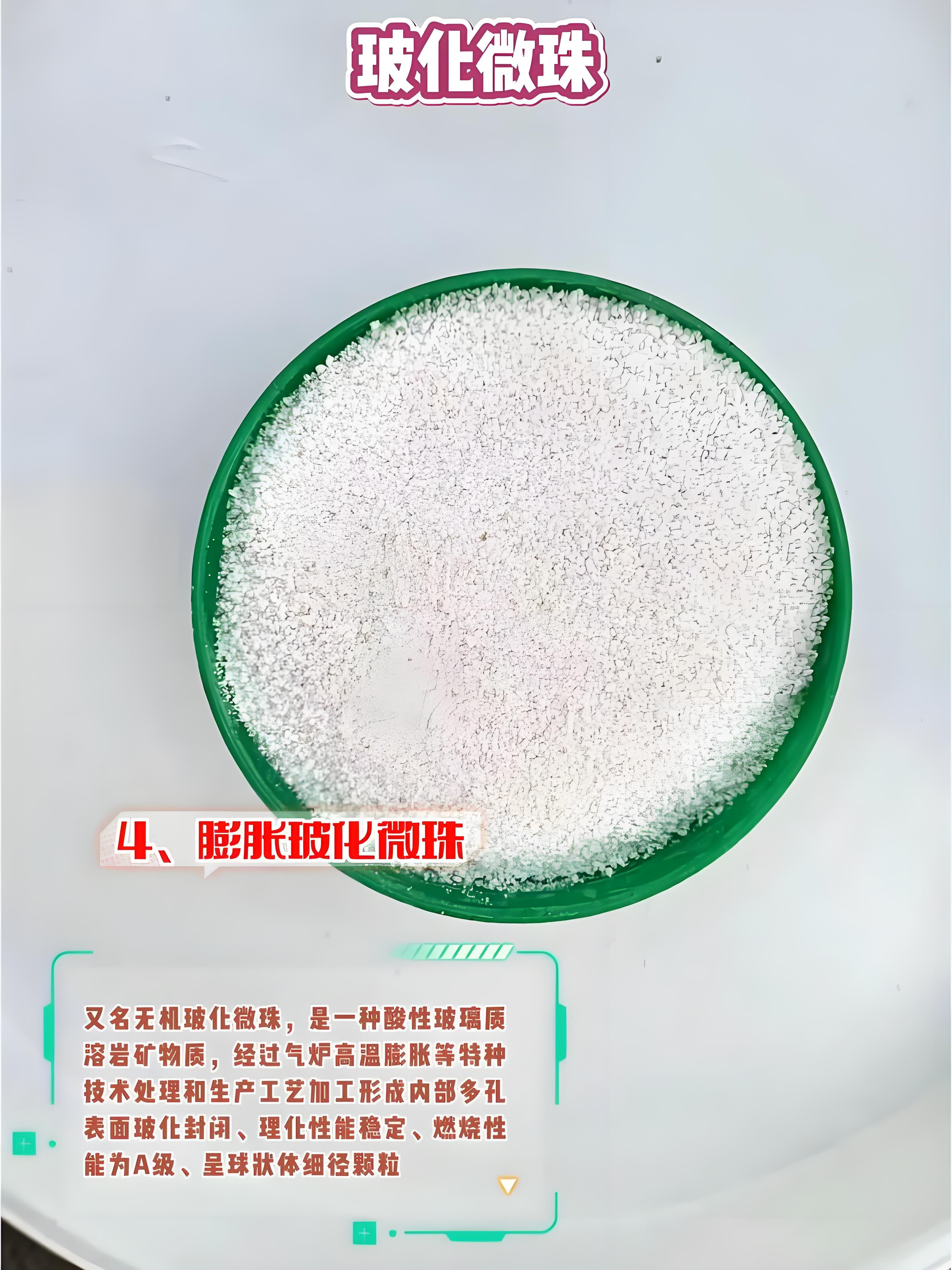 玻化微珠防火板原料:公司是玻化微珠防火板原料工厂,其生产的玻化微珠是制造防火板的优质原料。以这种原料制成的防火板具有良好的防火性能,能够在火灾发生时有效阻挡火势蔓延,为人员疏散和消防救援争取宝贵时间,适用于防火门芯、防火板材填充、防火墙、防火隔断等领域。