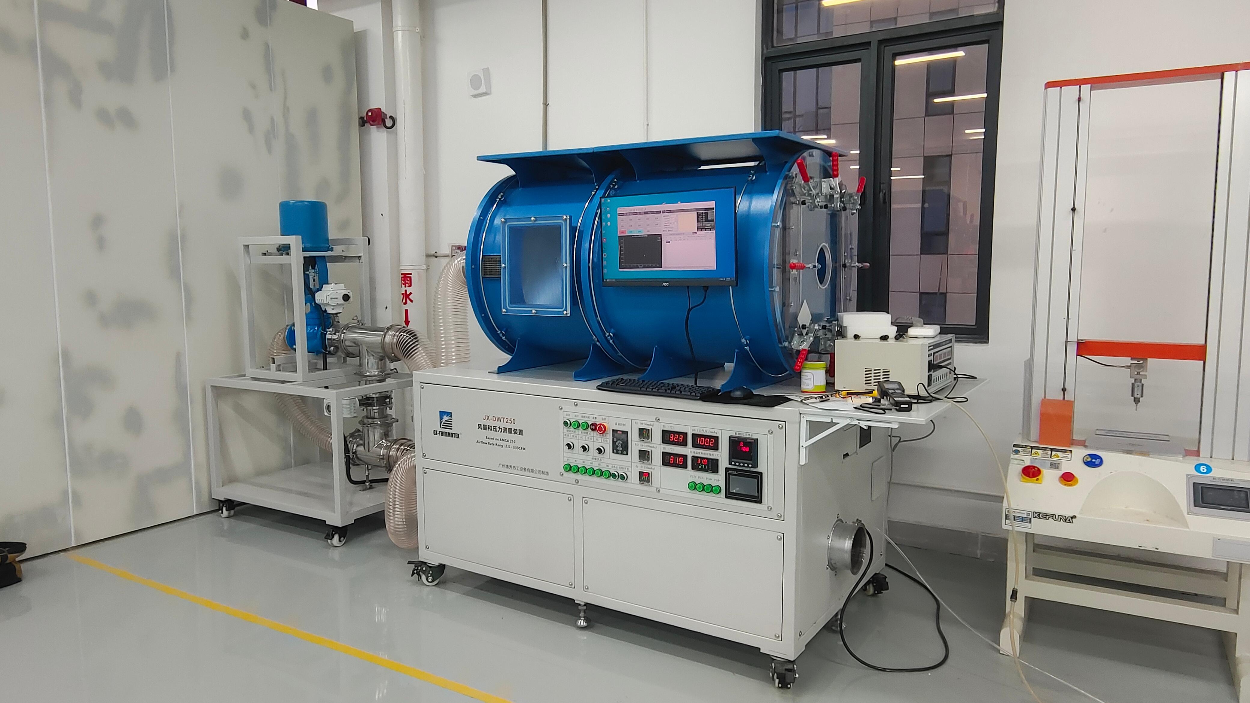 风机测试台则可以对不同类型和规格的风机进行全面的性能测试,包括风量、风压、功率等多项关键指标。通过该测试台的检测,能够有效提高风机的能效比,平均可提升15%左右。