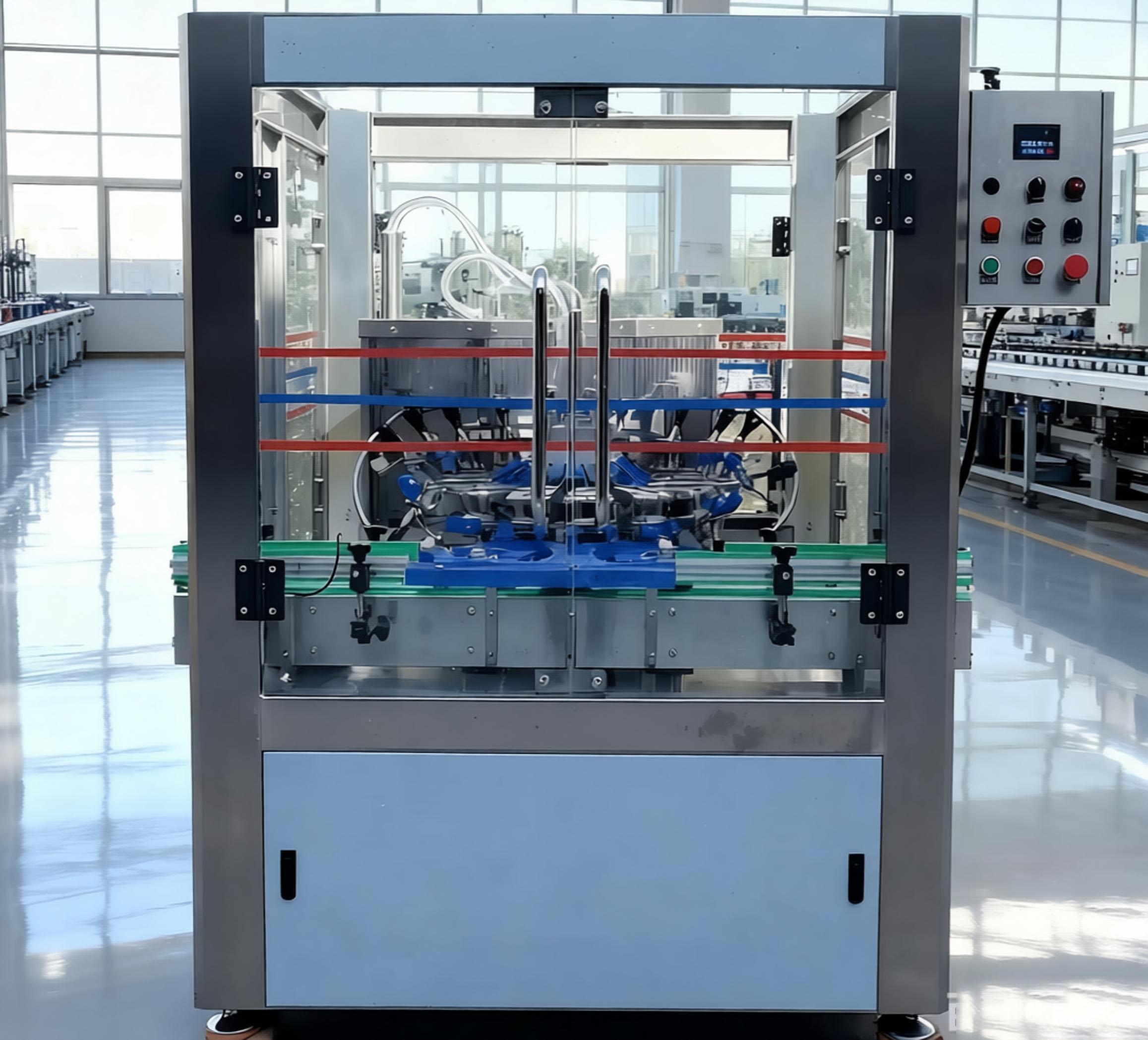 具体来看,其主打产品包括水剂类灌装机,如白酒灌装机、红酒灌装机、葡萄酒灌装机、黄酒灌装机、果酒灌装机、大桶水灌装机等;粘稠液体灌装机,像机油润滑油灌装机、香油灌装机、酱油灌装机、醋灌装机、食用油灌装机、洗衣液灌装机、洗洁精灌装机、蜂蜜灌装机、酱类灌装机等;易起沫类液体灌装机,例如玻璃水灌装机、调味品灌装机、洗涤品灌装机、饮料灌装机等;还有腐蚀性液体灌装机,如农药化肥灌装机、化工品灌装机、84灌装机等。