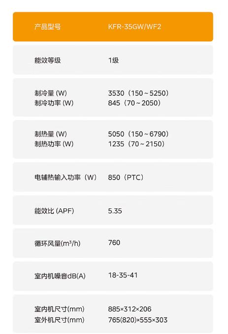外观设计上,采用陶砂杏配色,U型微笑曲线、3D水波纹面板、渐进微孔矩阵;3D彩色显控。智能与细节配置方面,具备APP远程智控、蓝牙闪控、忘关机提醒;强劲抽湿、双排冷凝器;室内机低噪音22dB,高风47dB;外机低风48dB,高风56dB。