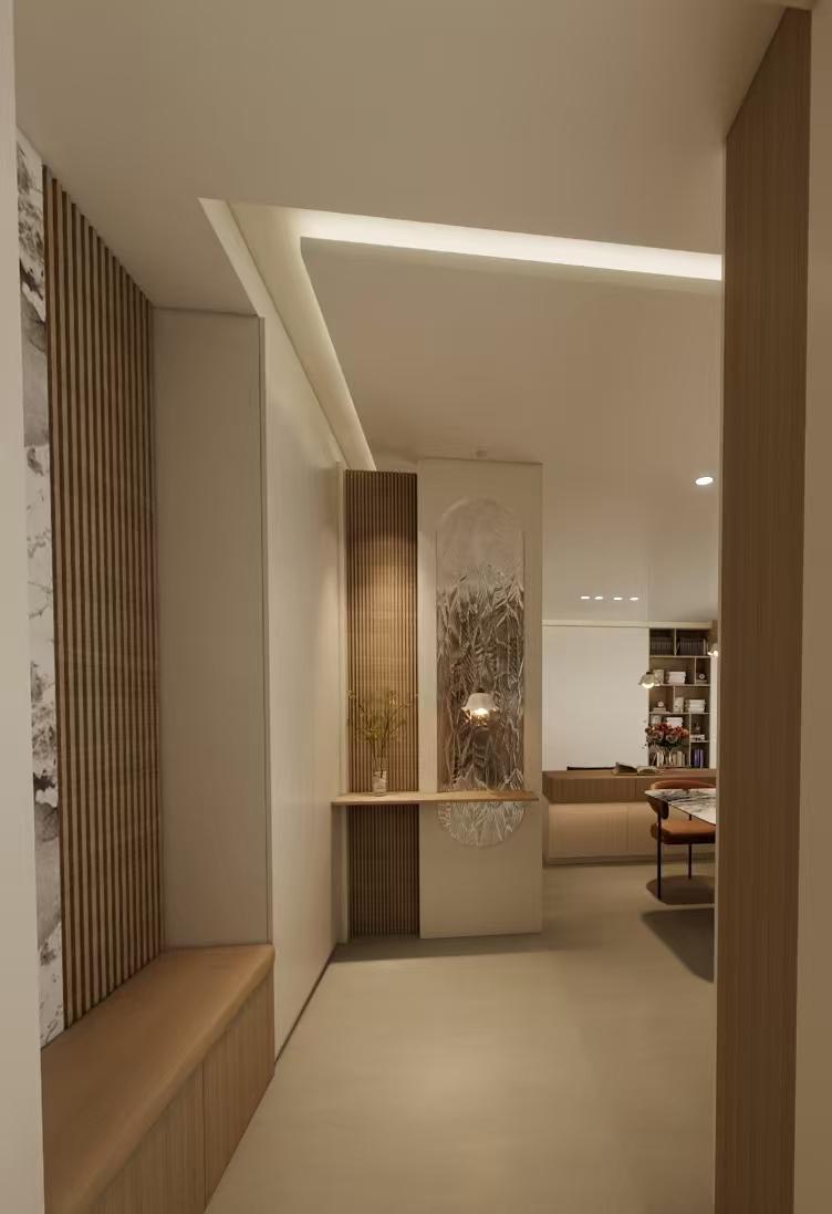 另一位业主王女士是南宁一位金融行业从业者,对生活品质要求极高。她希望新家时尚、有质感,同时要有足够的储物空间,满足三口之家的收纳需求。云南合四方装饰设计工程有限公司为其设计了现代轻奢风格的装修。主色调为浅灰色(墙面、柜体、地砖),跳色为爱马仕橙(单椅、挂画、摆件),点缀有玫瑰金金属线条、岩板。全屋以高级灰为基底,营造简约大气的视觉感受。客厅电视背景墙采用大规格岩板拼接,搭配玫瑰金金属线条收边,轻奢质感立现。在沙发区和餐厅区域,设计师巧妙融入爱马仕橙的单椅和装饰画,打破了灰色的清冷,为空间注入活力与温度。全屋定制柜体采用灰色肤感面板,既满足了超强收纳需求,又保持了视觉的统一性。王女士评价:“选择合四方是我装修做得正确的决定!我想要的那种低调的高级感,设计师完全get到了。灰色特别耐看,那个橙色点缀简直是神来之笔,每次进家门都觉得眼前一亮。让我满意的是他们的自有工人,施工特别细致,说好的工期一天没拖。现在邻居来参观,都追着我要合四方的联系方式!”
