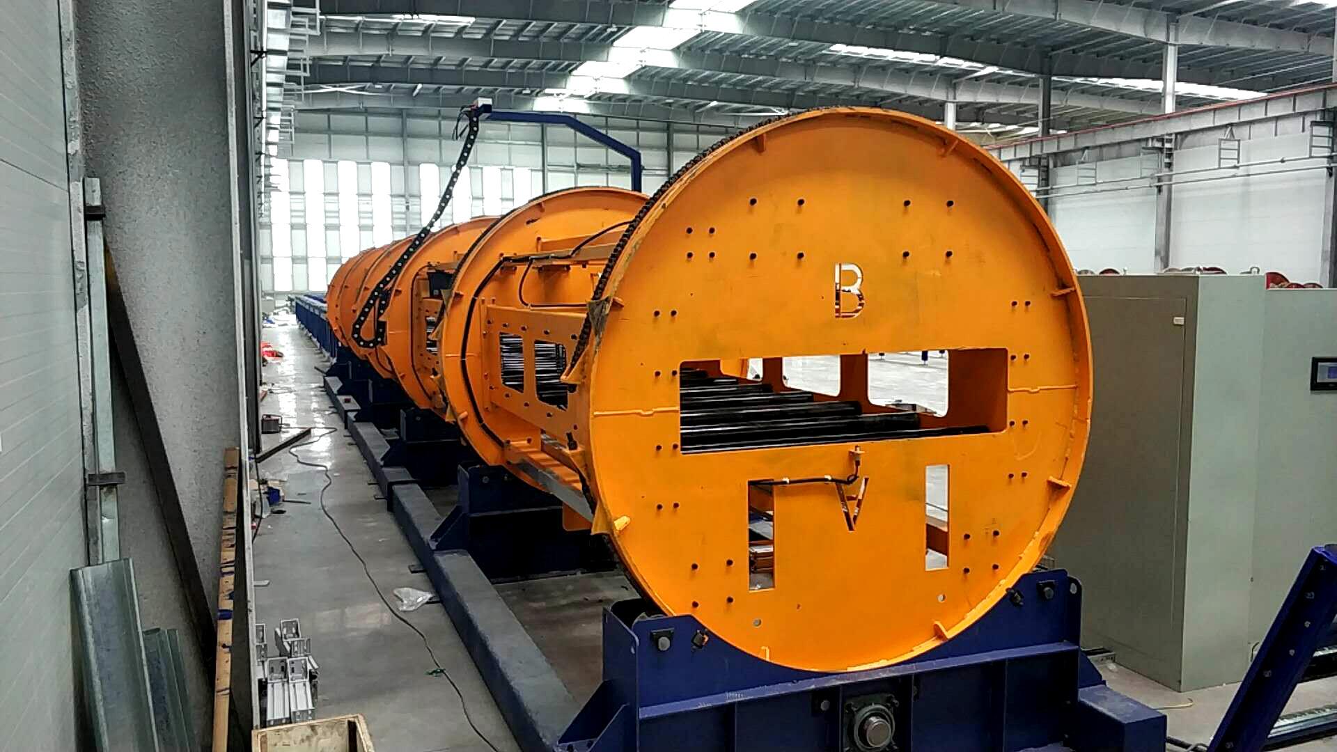 在生产设施方面,上海蓝瑾机械设备制造有限公司拥有独立烤漆房、台湾友嘉850加工中心1台,6150、6140数控车床2台,铣床2台,6000瓦数控激光切管机1台、1.2万瓦6025数控激光切割机1台、日本安川焊接机器人2台。车间配备5吨航车4架,原料堆放区域有10吨龙门航车1架,还有5吨杭叉2辆,10吨叉车1辆,振动校应1台,大型焊机7 - 10个。强大的生产设施保证了公司能够生产出高品质的翻转机产品,可生产160吨90度翻转机构,60吨的180度翻转机构,年产6000多万元。
