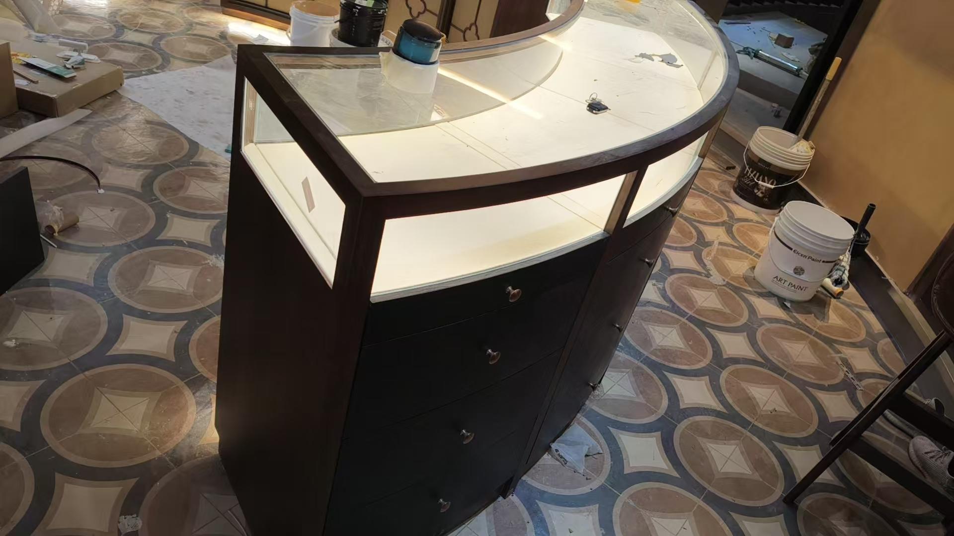 烤漆展柜则以其独特的外观效果受到众多商家的喜爱。烤漆工艺使得展柜表面光滑亮丽,具有良好的质感和视觉效果。四川美宜修装饰材料有限公司的烤漆展柜,在制作过程中严格把控质量,烤漆均匀,色泽鲜艳,不易褪色。它适用于各种**商品的展示,如珠宝、手表等,能够为商品增添一份高贵的气质。