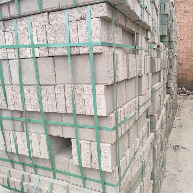 水泥面包砖采用本地 P・O 42.5 级水泥、水洗河砂、碎石骨料等原材料,经过机械化高压成型(压力 ≥150 吨),密实度高、强度稳定。抗压强度在 C30~C40(30~40MPa)之间,能满足市政人行道、非机动车道等的使用要求。