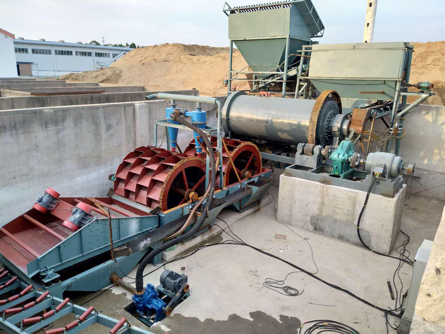 公司的洗沙机可以对砂料进行清洗,去除其中的泥土等杂质,提高砂料的纯净度。脱水筛则能对洗后的砂料进行脱水处理,使砂料的含水量降低,便于后续的使用和运输。细沙回收机能够将洗沙过程中流失的细沙进行回收,提高资源的利用率,减少浪费。