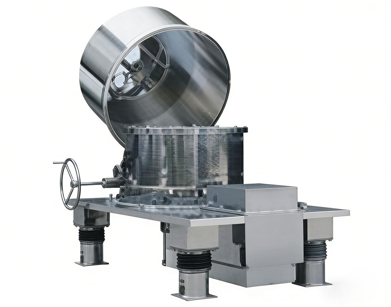 PXG/SXG系列离心机为人工下部卸料间歇操作的过滤式离心机,适用于含中、细(固相颗料0.01mm)粒状、结晶状悬浮液的分离或短纤维状物料的脱水,广泛用于化工、轻工、制药、食品等工业部门。机型除具有上部卸料离心机的传统优点外,还具有采用下部卸料,不仅减轻了劳动强度,改善了操作条件,而且还可提高生产效率;采用人工下部卸料,可节省刮刀卸料机构,对不允许固相粒子破损的物料分离尤为适合;与物料相接触的零部件均用不锈钢制造,亦可根据用户要求采用其它材质制造等特点。