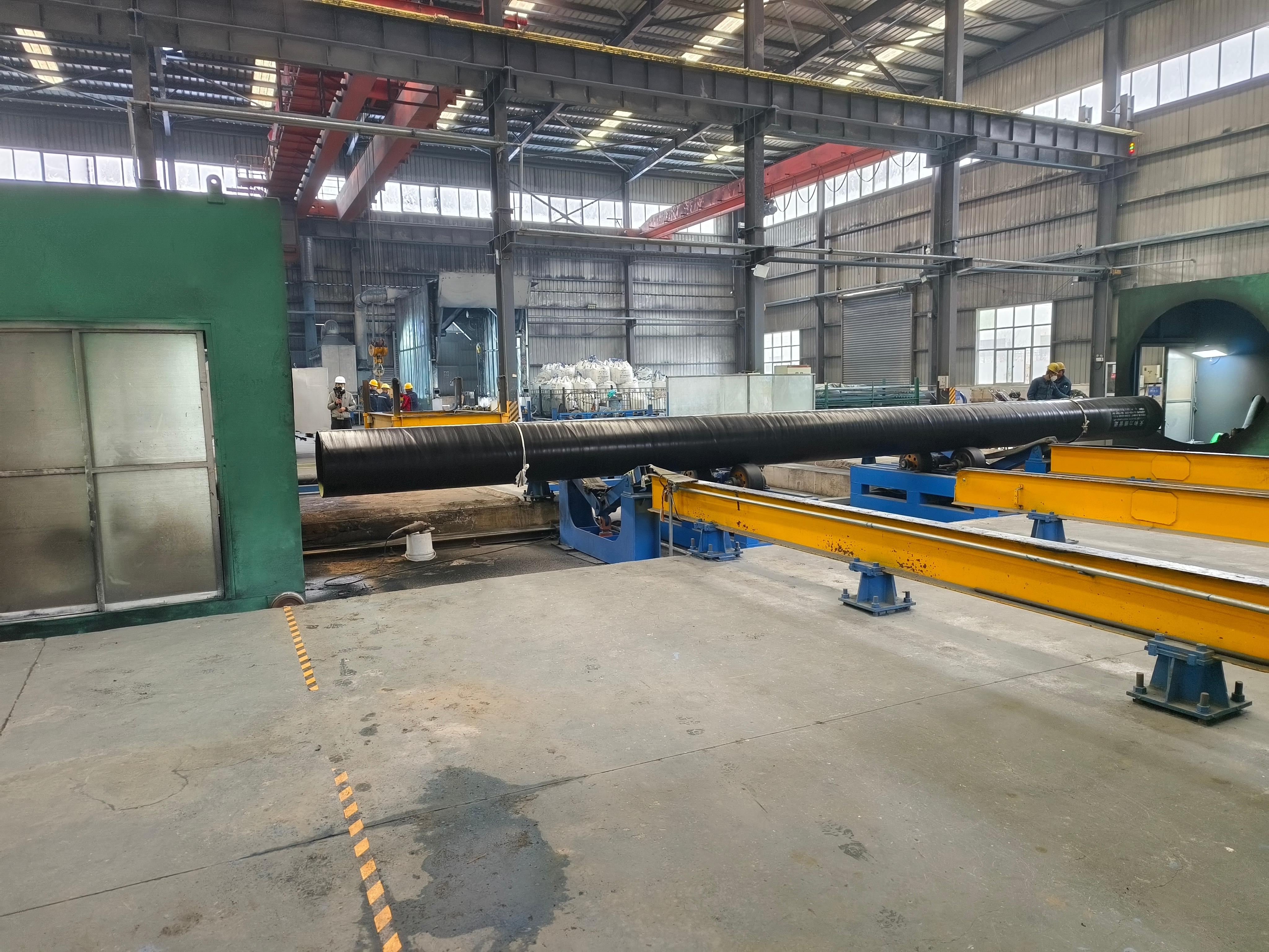 公司的生产规模也相当可观。占地150000㎡,建筑面积50000㎡,拥有六条符合行业标准的生产线,可生产∮219—3620mm、壁厚6mm—25mm的双面埋弧螺旋焊管,年产能30万吨,同时还提供3PE、涂塑复合钢管等防腐配套加工服务。