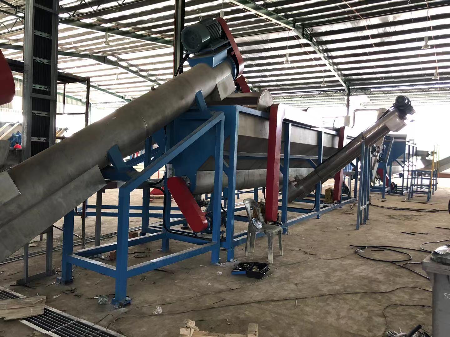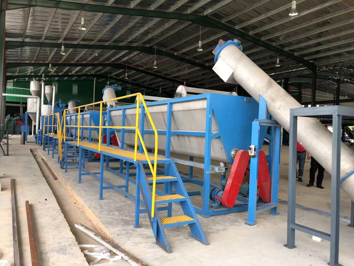 具体到塑料清洗线(PE/PP薄膜、PET瓶片),采用组合工艺:破碎→摩擦洗→热洗→漂洗→沉浮分离→脱水→烘干,去泥沙、去胶、去油墨、去标签纸效果好,净度可达98%以上。其特色无水清洗线(专利)节水80%、无污水、适合轻脏薄膜。产能方面,小型为300 - 500 kg/h;中型为500 - 1500 kg/h;大型为1500 - 3000 kg/h。节能方面,比普通线省电15 - 25%,摩擦/脱水段优化明显。水耗采用循环水设计,用水量低、环保达标。自动化程度高,全线PLC + 触摸屏,一键启停、故障报警、参数记忆,喂料、清洗、脱水、烘干联动控制,人工少、稳定性高。
