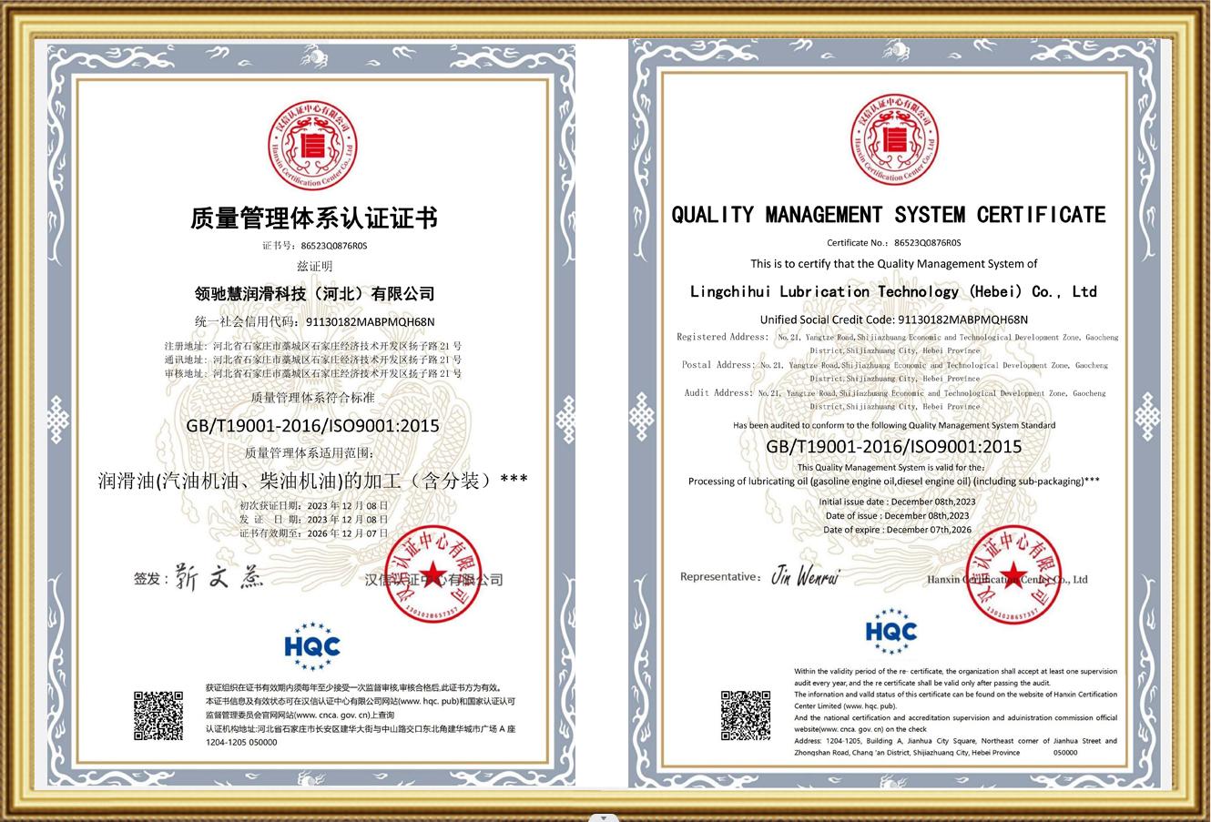 在企业****方面,领驰慧润滑科技(河北)有限公司是全联石油业商会润滑油分会主席单位、中国石油流通协会润滑油专业委员会理事单位及河北省润滑油行业协会会长单位。并且已通过 ISO9001 质量管理体制认证(证书号:86523Q0876R0S)。此外,公司在中国中央电视台 CCTV7、CCTV17 播出过 GF1 润滑油广告宣传片(ID 号:2464 - 8248 - 3005 - 0041)。