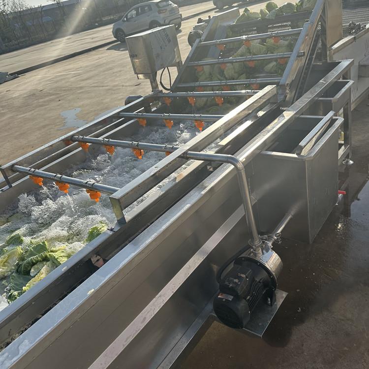 此外,该公司的清洗机设备中设有气泡发生装置,使物料呈翻滚状态,去除产品表面农残,可同时加入适量药剂(进行消毒固色),洁净度高、节能、节水,操作方便。在原有气泡清洗机的基础上,结合客户所清洗原料的特点,自主研发的一款清洗设备,对缠绕性、较长的原料具有较好的清洗效果。机体采用SUS304(抗腐蚀性较强)优质不锈钢制作,严格按照食品出口的标准。采用高压气泡水浴清洗,清洗能力大,清洗率高,物料输送到高压水流实现二次清洗,传送到下道工序。具有能耗小、体积小、重量轻、外形美观和操作方便的特点。箱体采用优质不锈钢材质,不锈蚀,清洁卫生,毛辊不易变形,毛刷采用尼龙线绳轧制而成,经久耐用。