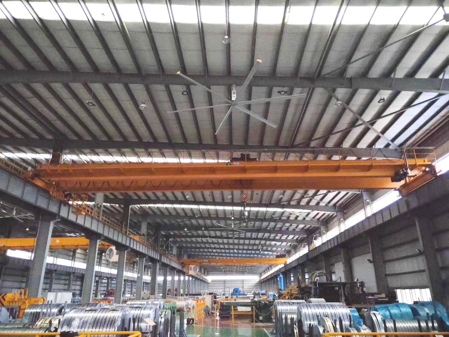 在物流仓储行业,解决电商仓库、冷链物流、原材料库房 “货架密集、空气凝滞、温湿度不均” 的问题。单台覆盖1800㎡空间,能有效降低底层货物霉变风险,防止高层货架积热,在冷链仓库中还可避免货物表面结霜,保障货物存储品质。