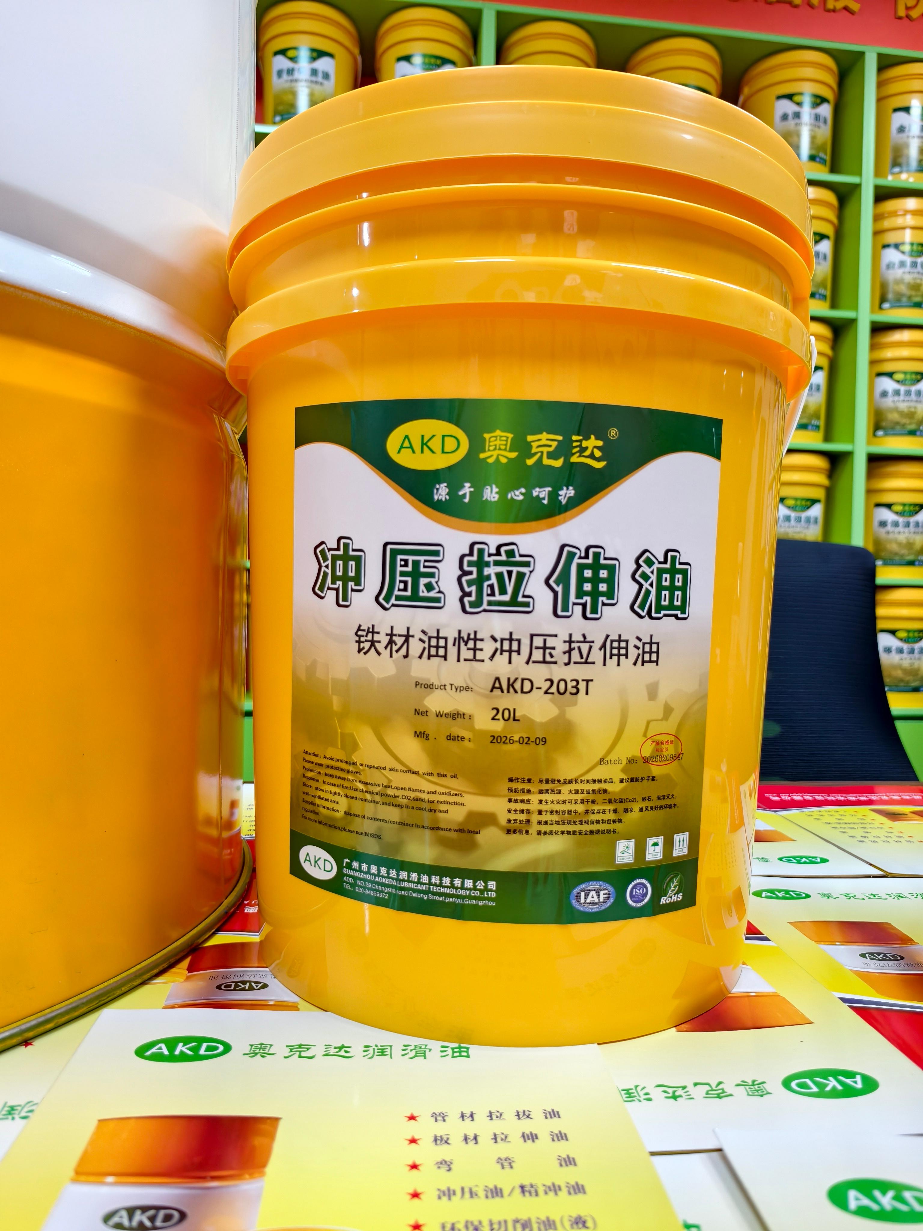 公司的核心产品丰富多样,包括拉拔油、弯管油、拉伸油、冲压油、精冲油、切削油、切削液、防锈油、管件缩口扩管成型油、攻牙油等。这些产品具有诸多特点,如高润滑,有效保护模具及冲头;采用环保材料,可生物降解的植物基添加剂以及合成脂等调配,环保不伤皮肤、产品和设备;配方特别添加易清洗添加剂,保证产品加工后油污清洗方便,不影响后续表面处理工艺;特别复配奥克达防锈配方体系,解决厚板精密冲压后很快生锈的问题;独有的配方有效保护冲压产品的切断面以及拉伸表面的光洁度;可以根据客户不同要求对应调配出免费样板,全国包邮提供给客户免费测试;配合签约物流公司,发货迅速,哪怕一个小桶全国物流发货,送货到厂;冲压拉伸油在拉伸膏、水基拉伸油、挥发性冲压拉伸油等方面,全方面满足客户不同要求。