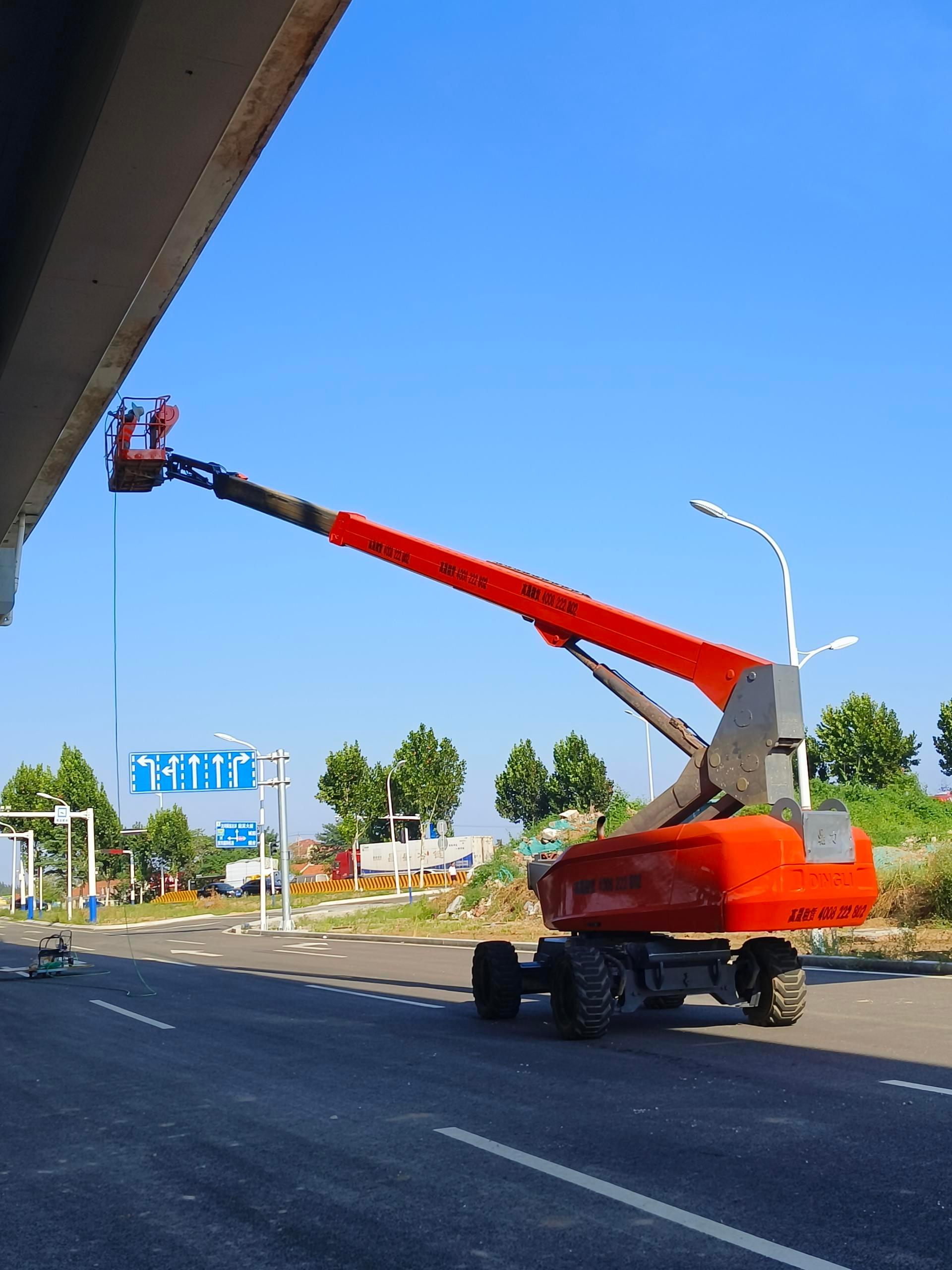 16 - 58米直臂车,具有较高的作业高度和较大的作业半径。它可以快速到达作业位置,适用于大型建筑、桥梁、电力设施等的安装和维护工作。