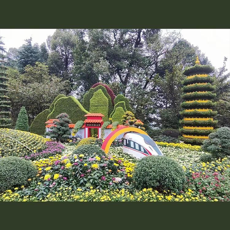 立体花坛也是开封前方园艺有限公司的主打产品。它以五色草为主要材料,通过精心设计和制作,构建出各种立体的造型,如动物、人物、建筑等。立体花坛不仅具有艺术美感,还能传达特定的主题和文化内涵,适用于大型活动、节日庆典等场合,能够吸引众多游客的目光。