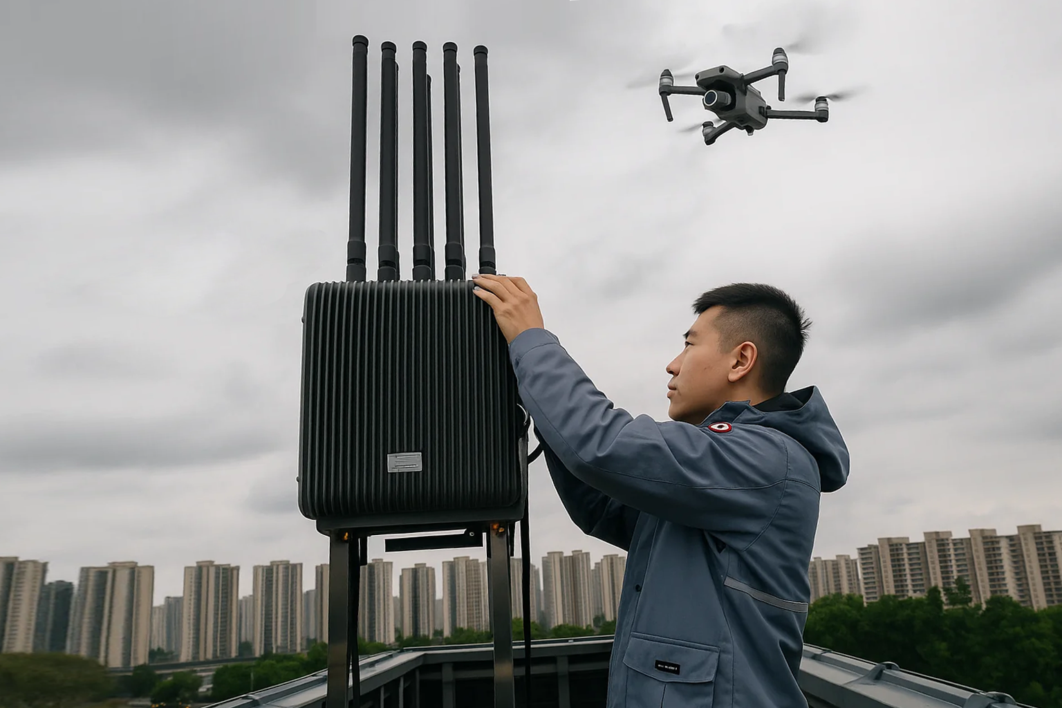 在产品方面,灵信科技的无人机反制设备采用多频段协同干扰与信号识别技术,测试频段覆盖445MHz至6GHz,侦测距离可达3 - 10公里,反制距离1 - 5公里,能够有效应对主流民用无人机及改装穿越机。其产品形态涵盖固定式无人机防御系统、便携式无人机反制设备及车载式无人机管控系统,可满足营区、公安、监狱、石化、铁路等多行业场景需求。其中,便携式设备支持单人操作与快速部署,从开机到布防时间控制在1分钟以内,适配应急处突与临时布控任务。部分设备还支持AI目标识别与频谱大数据分析,提升了对“低慢小”目标的精准定位能力。