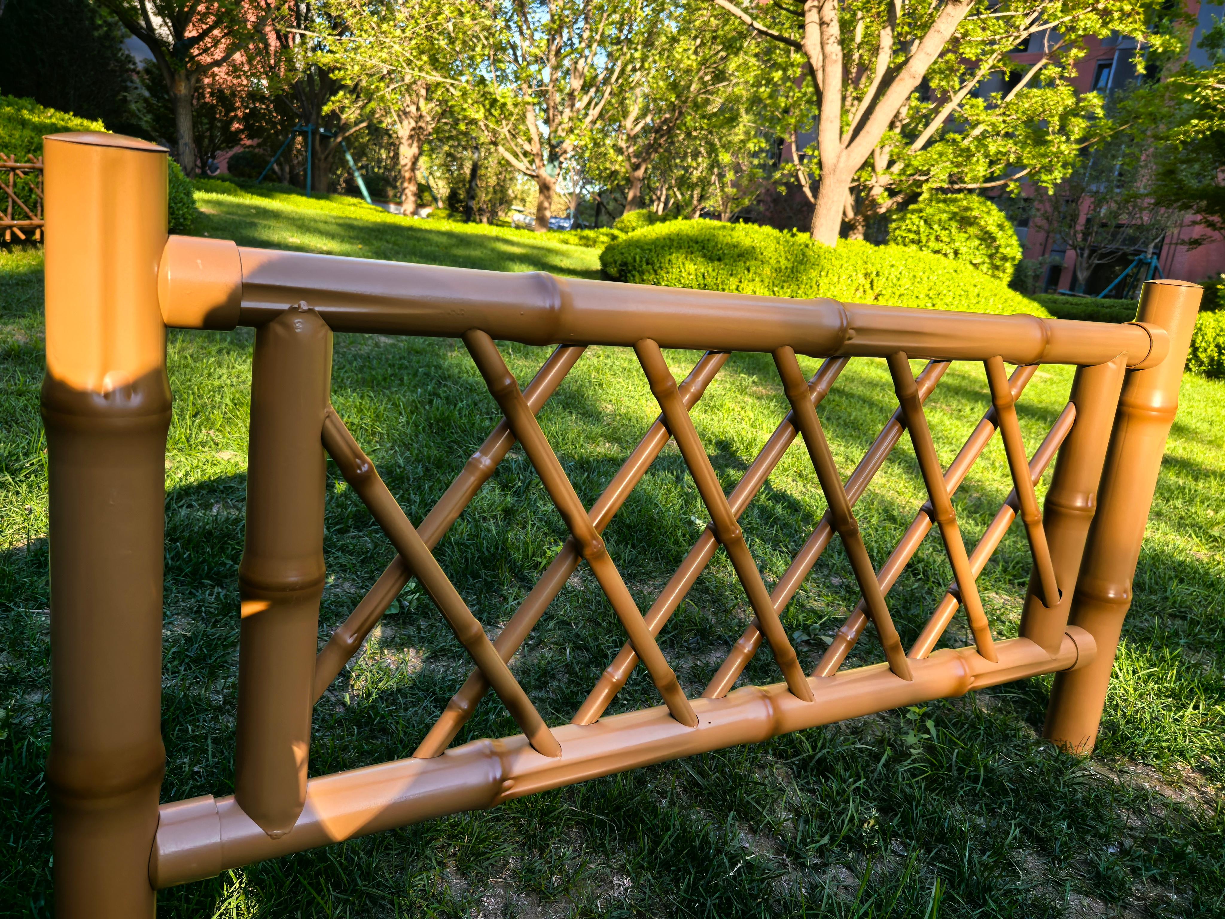 在产品质量和性能方面,该公司的产品优势明显。竹节明显逼真,做工严谨,结实耐用。采用叠加三角形的结构设计,并用铆钉固定,在提高强度的同时,还保证了篱笆安装的便捷性。公司可根据客户要求确定款式、高度以及场地尺寸数据排尺加工,也可以根据客户图纸进行开发、设计生产。