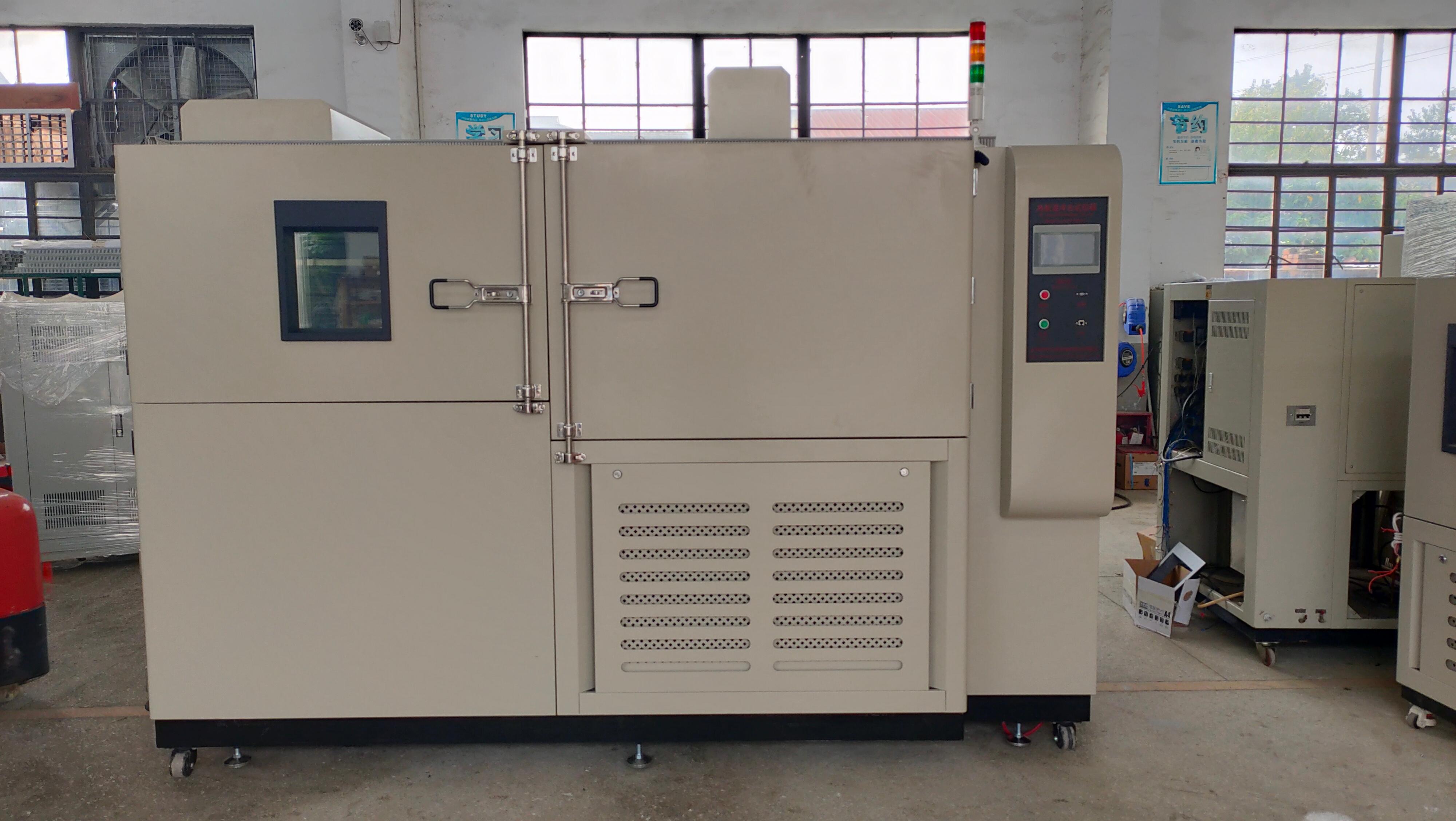 产品箱体材质方面,整体采用数控机床加工成型,造型美观大方。内胆为1.2mm厚SUS304级不锈钢拉丝/镜面,外壳是1.5mm厚冷轧板烤漆外胆采用A3钢板喷塑,保温层为100mm厚细纤维或聚胺脂硬质发泡,箱门与箱体之间采用双层耐高温之高张性密封条确保测试区密闭,箱内设有2个活动样品架可随意调节高度,门框隔热采用双层耐高低温老化硅橡胶门密封条,观察窗由4层中空钢化玻璃制成,带有自动除霜导热功能,设有防爆、耐高、低温的照明装置,试验箱箱体底部采用高品质可固定式PU活动轮方便移动。